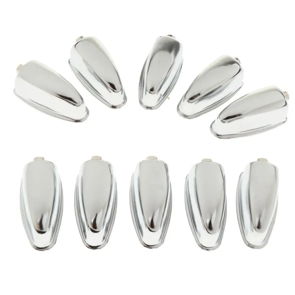 Imagine elevating your drum set’s appearance and functionality with these sleek, high-quality drum lugs. Crafted from durable iron, each lug features a polished, streamlined oval shape that complements any drum style. Available in sophisticated black with a glossy finish or shiny silver, these lugs add a modern touch to your equipment. Measuring approximately 52 mm long, 25 mm wide, and 23 mm high, they’re designed for a perfect fit and easy installation thanks to their inner spring mechanism. Whether replacing worn-out parts or customizing your drums, these lugs ensure a secure hold, high durability, and a professional aesthetic that highlights your musical personality.