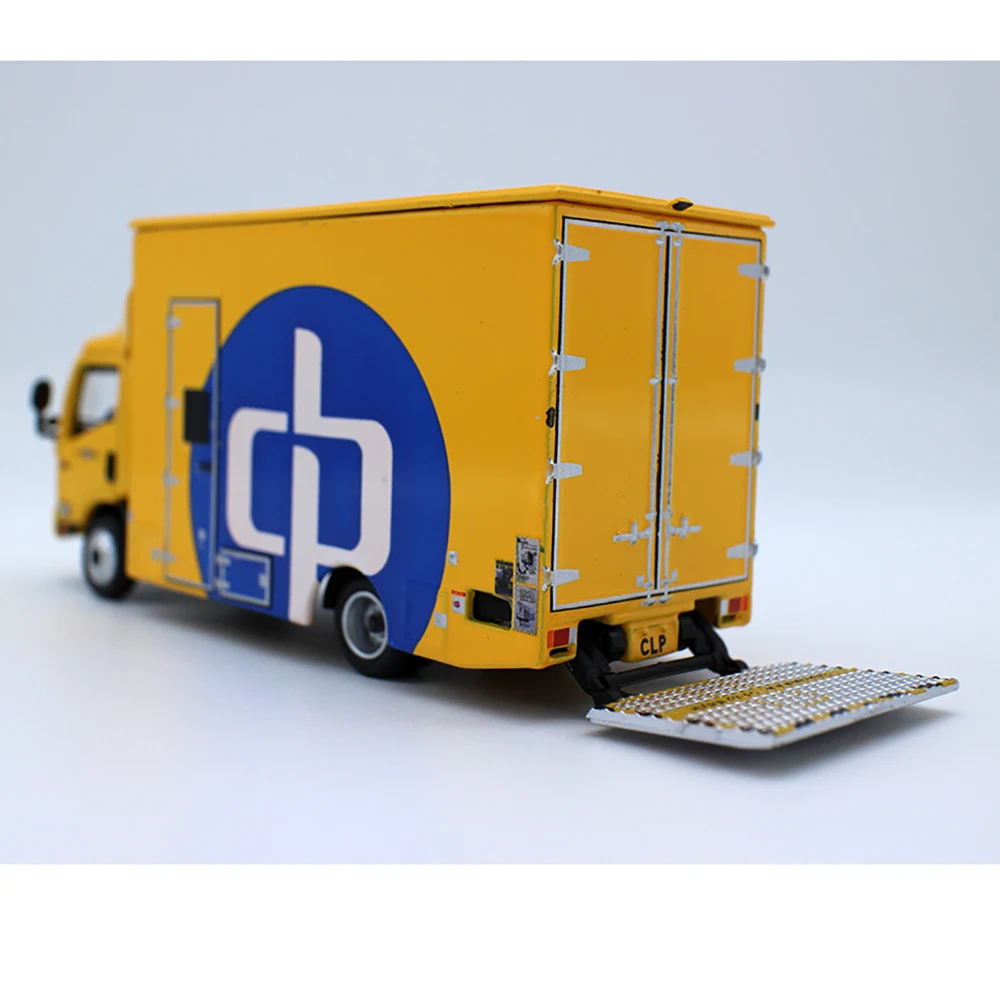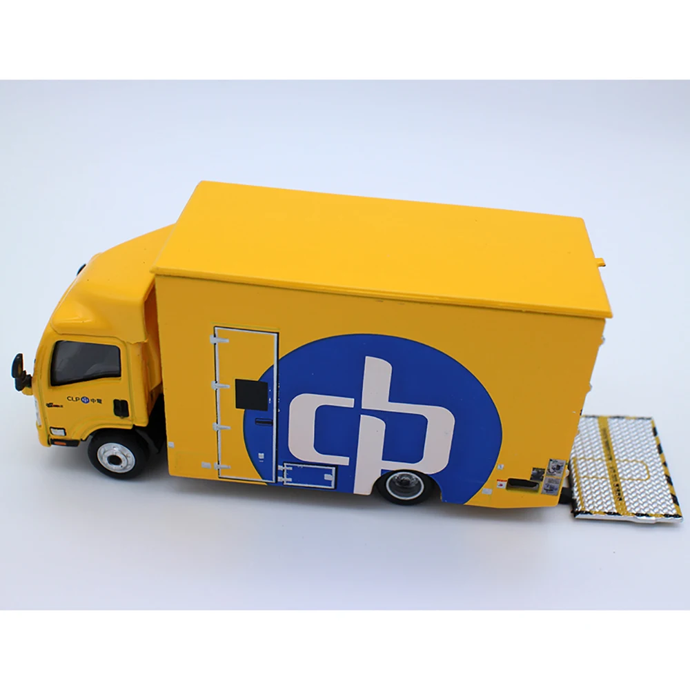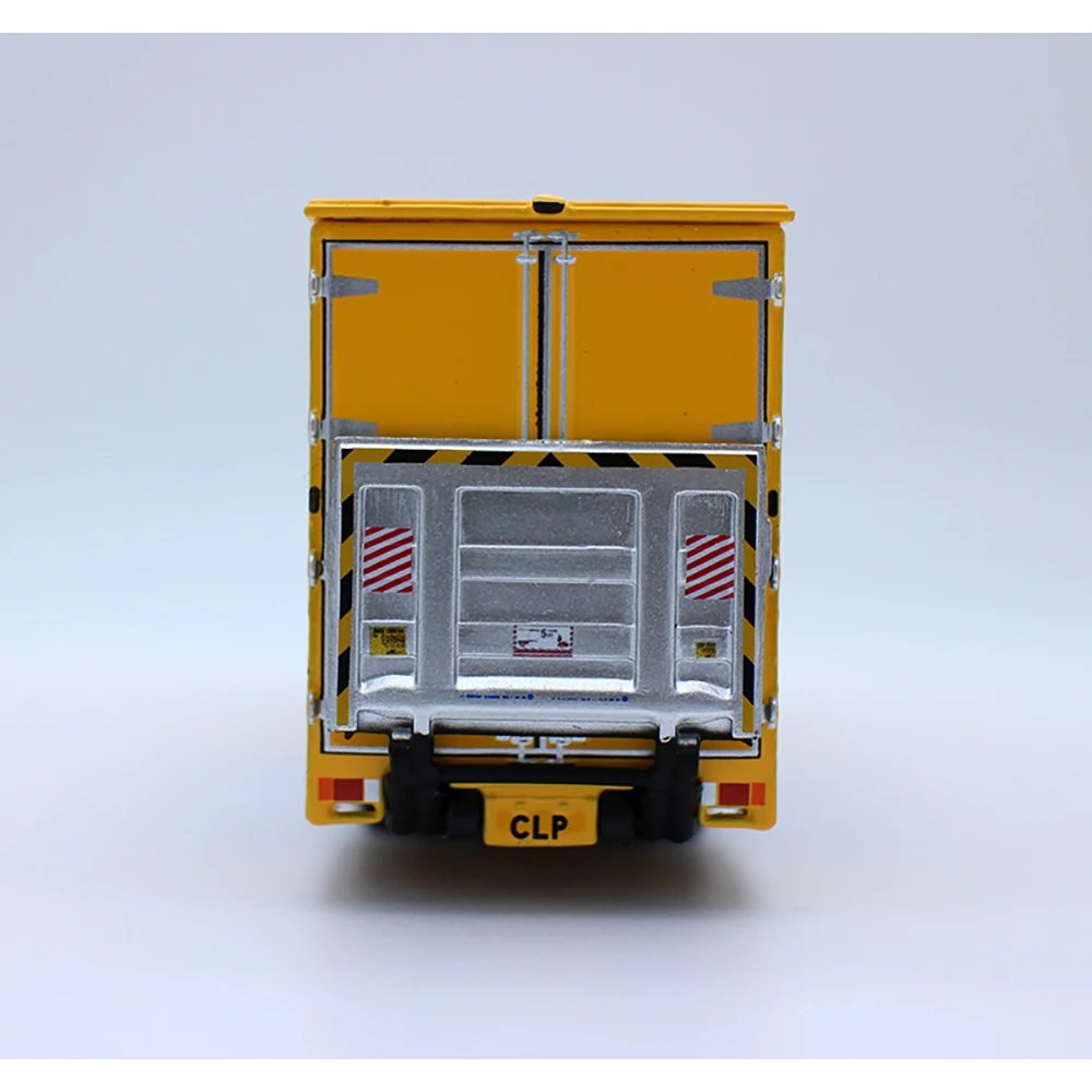 Imagine adding this stunning collectible to your collection, a meticulously crafted die-cast alloy model of an Isuzu CLP Box Lorry. Its vibrant yellow exterior commands attention, highlighted by sleek black accents on the grille, door handles, and cargo edges. The detailed cab features a realistic windshield with slight tint, modeled windshield wipers, side mirrors, and textured door handles. The black grille with horizontal slats adds a sturdy, industrial feel. The bright yellow cargo container is smooth and streamlined, with a large circular logo in white and blue background for striking contrast. Deep black wheels with shiny silver hubcaps complete the professional, high-quality appearance. Perfect for display, gifting, or as a unique gift for enthusiasts.