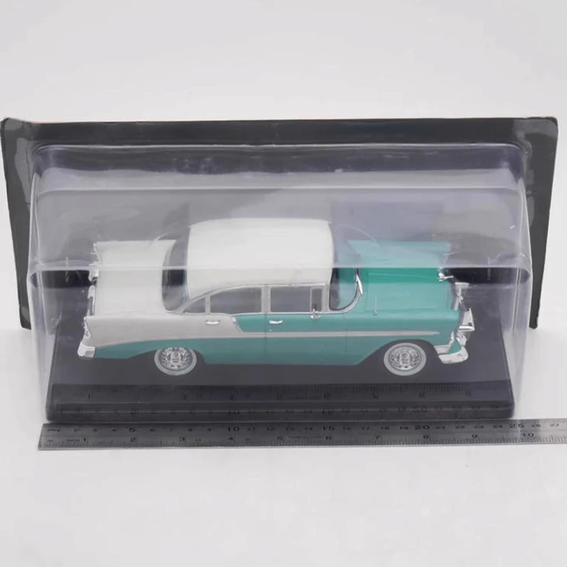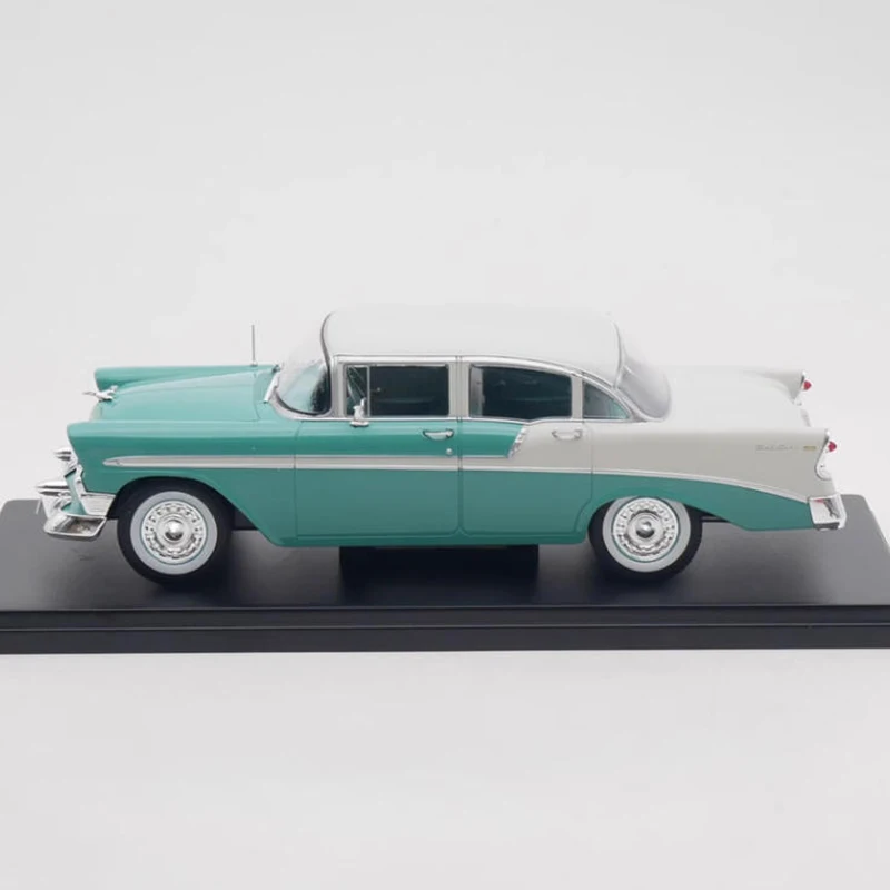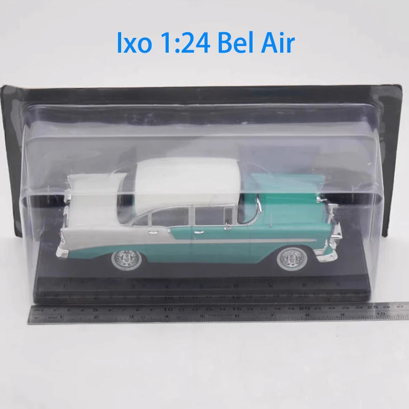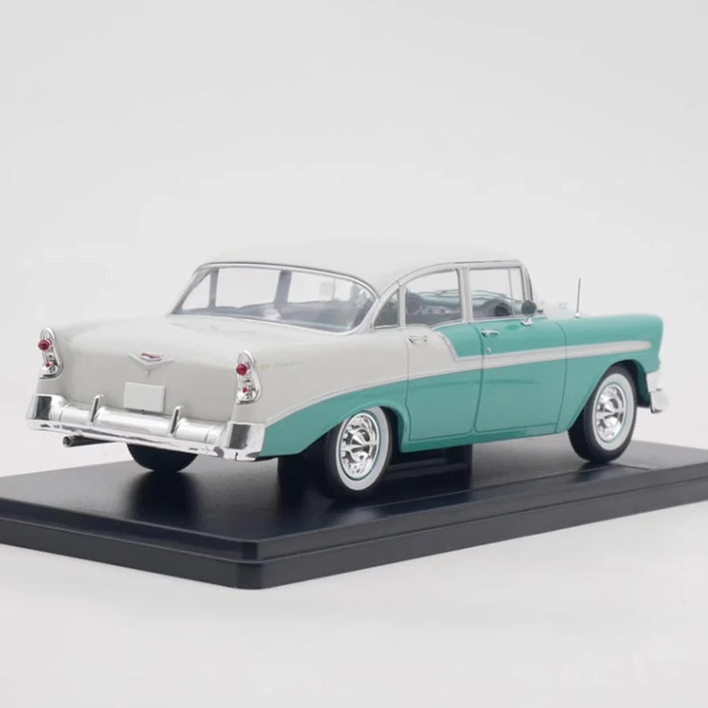 The Ixo 1:24 Bel Air Alloy Model is a meticulously crafted diecast car that captures the essence of classic 1950s design. Featuring a striking two-tone turquoise and white color scheme, this model is adorned with chrome accents on the grille, bumpers, and side trim. The vintage appeal is enhanced by round headlights, iconic tail fins, and detailed whitewall tires. Constructed from durable alloy and plastic, this static display model does not require batteries, making it perfect for collectors and as a decorative piece for offices, studies, or bars. Celebrate mid-century automotive elegance with this timeless collectible.