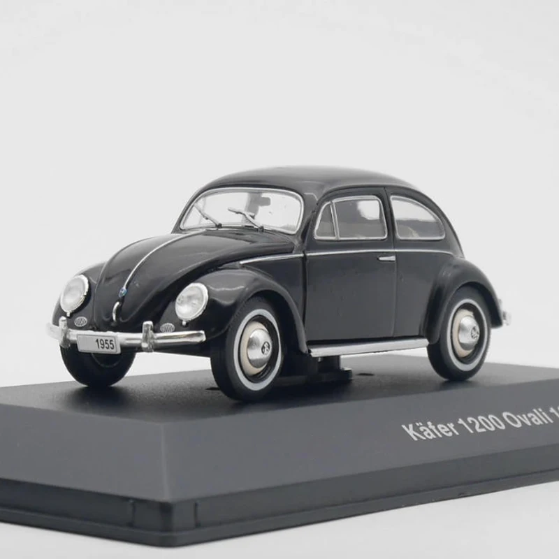 - Mounted on a black plastic base displaying “Käfer 1200 Ovali 1955” in white lettering for added elegance.