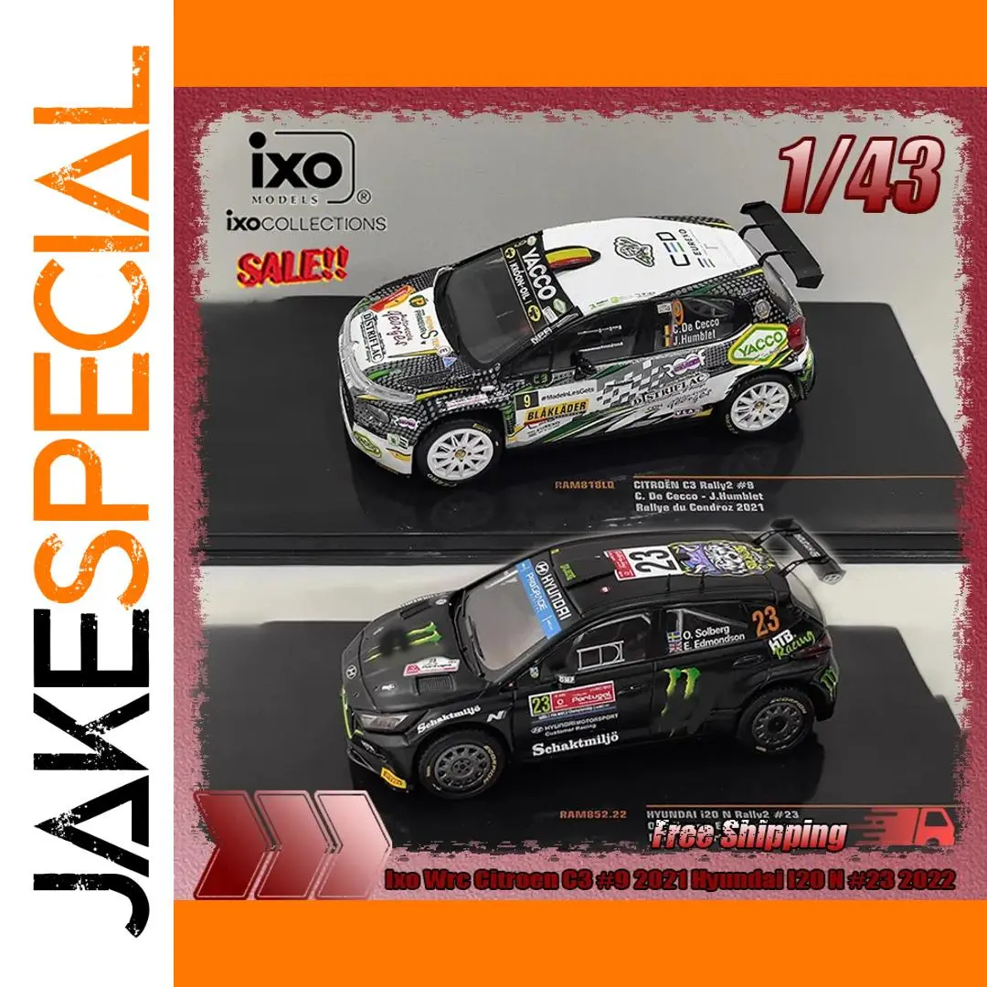- Authentic replica in 1:43 scale featuring detailed WRC Citroen C3 #9 2021 and Hyundai I20 N #23 2022 models for true-to-life display.