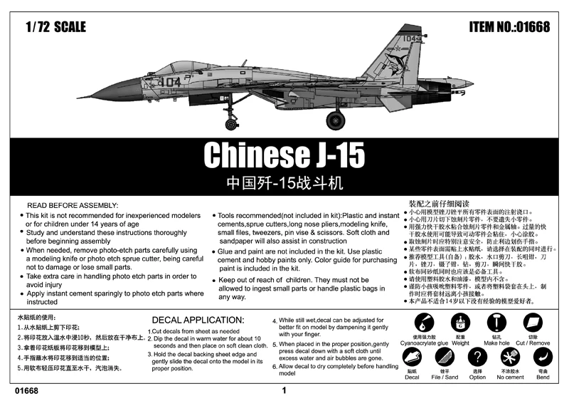 Immerse yourself in the detailed world of military aviation with this high-quality plastic model kit of the J-15 Flying Shark jet fighter. Featuring over 190 finely crafted parts, including clear components and etched details, this 1:72 scale replica offers an authentic assembly experience. The kit’s intricately engraved panel lines and precise design allow skilled enthusiasts to create a stunning representation of this remarkable aircraft. Perfect for mature collectors, it provides an engaging building challenge that results in a display-worthy model. Visualize yourself completing this project and showcasing your craftsmanship with a model that captures the essence of modern naval aviation.