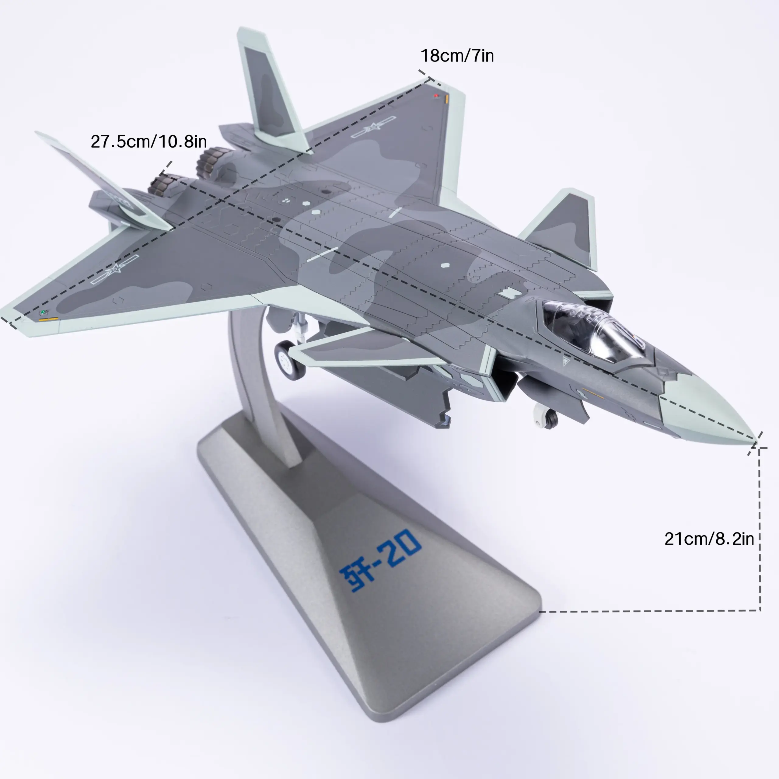 Envision yourself proudly showcasing this meticulously crafted J-20 model in your collection or workspace. Its bold, modern silhouette and intricate detailing evoke admiration and sparks conversations. Whether you're a dedicated military aviation enthusiast or a passionate collector, this model adds a touch of technological excellence and artistic finesse to your assortment. Don’t miss the opportunity to own this exclusive, high-quality miniature—your display deserves it. Elevate your space with this striking representation of advanced fighter aircraft today.