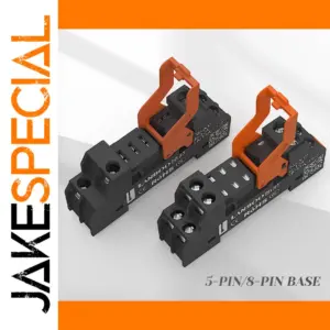 This high-quality relay base features a durable black plastic housing with a compact rectangular design, supporting 5-pin and 8-pin configurations for versatile applications. It accommodates voltages of 12V, 24V, and 220V AC/DC, with amperage ratings of 8A for 8-pin models and 12A for other configurations. Designed for electromagnetic relay use, it operates on DC power supply and is CE certified, ensuring safety and reliability. The bright orange plastic clips at the top facilitate easy securement and release of relay modules, while the organized metal contact points provide precise connections. Ideal for low-power, general-purpose relay applications, it offers a sleek, functional, and dependable solution for your automation or control projects.