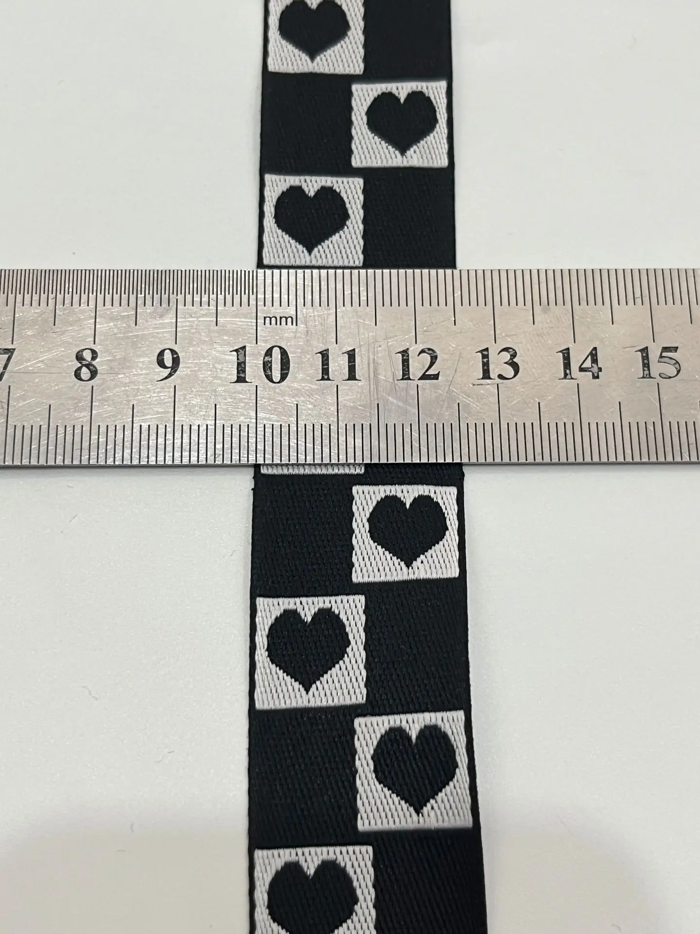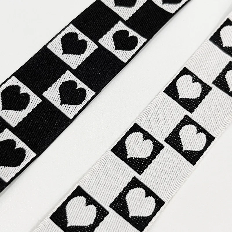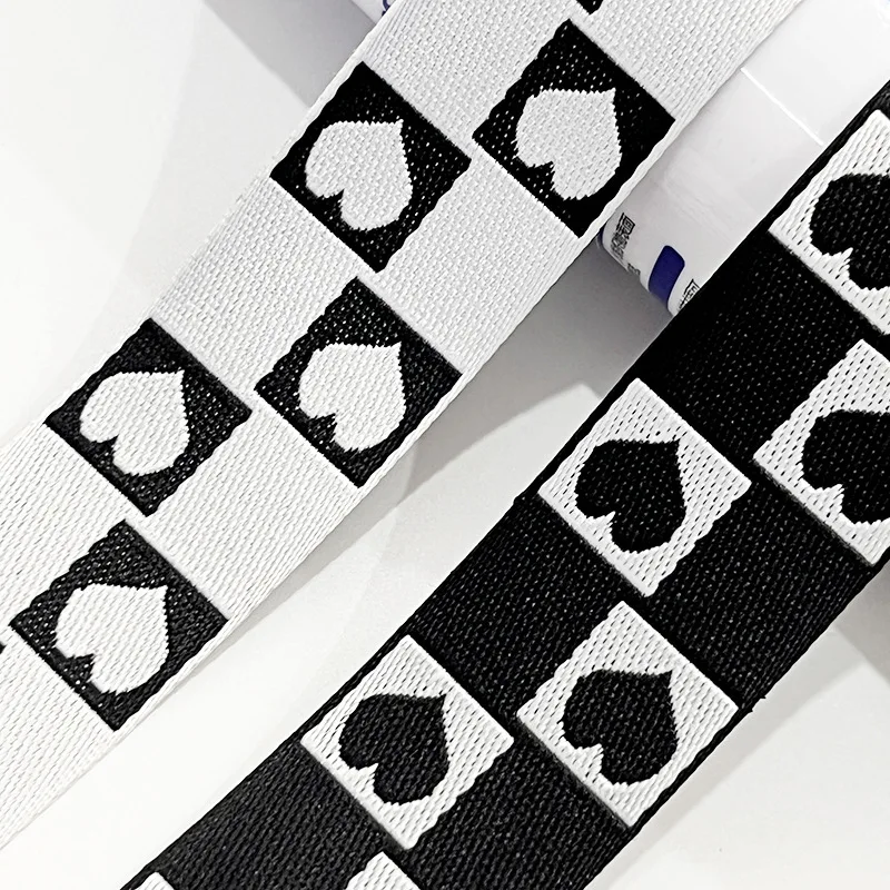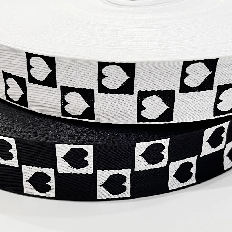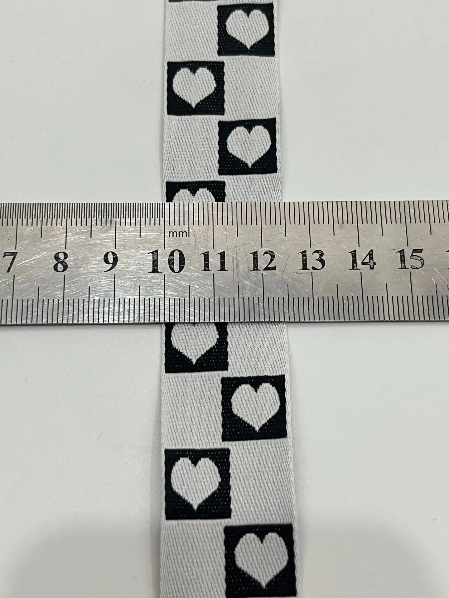 Imagine enhancing your DIY projects with this stunning jacquard embroidered ribbon. Available in two striking designs, the top roll features a white background adorned with black geometric shapes and heart motifs, while the bottom roll boasts a black backdrop with white patterns and heart outlines. Made from a blend of polyester and cotton, this ribbon is not only durable but also soft to the touch. With a width of 25mm (1 inch) and a generous length of 5 yards (4.6 meters), it's perfect for adding a chic and personal touch to bags, garments, and home textiles. Elevate your crafting experience and watch your creations come to life!