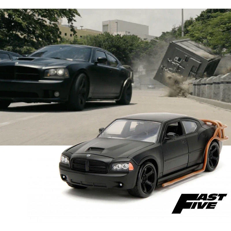 Experience the thrill of the “Fast & Furious” franchise with the JADA 1:24 scale diecast model of the 2006 Dodge Charger. Finished in a striking matte black, this sleek replica features openable doors and a hood that reveal a detailed interior and engine compartment. The sporty dashboard and black seating enhance its authentic look, while black alloy-style wheels and a distinct brown protective roll cage complete the racing aesthetic. Crafted from durable alloy and plastic, this meticulously designed model is perfect for collectors and car enthusiasts alike, capturing the essence of the iconic vehicle in a captivating miniature form.