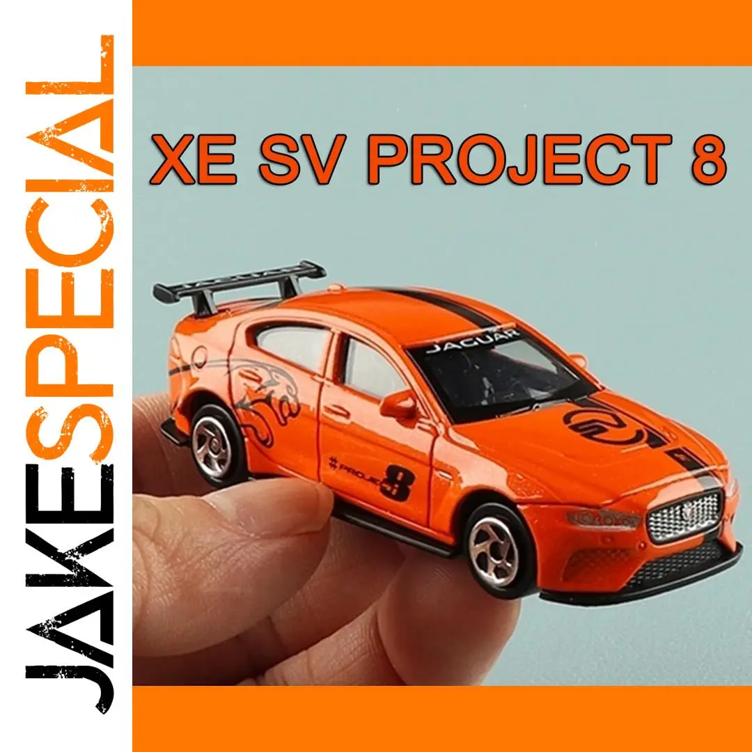Experience the thrill of owning this highly detailed miniature model of the iconic Jaguar XE SV Project 8. Crafted with a zinc metal body featuring glossy orange paint, accented with sleek black racing stripes that run from front to rear, this mini replica embodies speed and sophistication. The black-tinted windows reveal a finely detailed interior, while the silver mesh grille and transparent headlights emphasize realism. Equipped with rubber tires mounted on shiny silver rims, this model offers an authentic tactile experience, perfect for display and collection. Its durable construction includes a plastic chassis and shock-absorbing wheels, facilitating smooth slide-forward movement. Measuring approximately 8 cm long, 3.3 cm wide, and 3.2 cm tall, this miniature is ideal for enthusiasts and collectors alike, adding a touch of sportscar elegance to your collection.