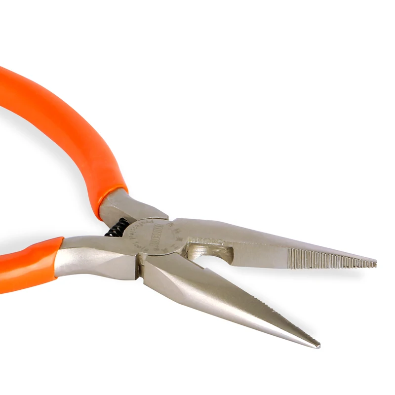 Experience the perfect blend of precision, durability, and ergonomic design with this 5-inch multi-function needle-nose pliers from JAKEMY. Crafted from high-hardness chrome vanadium steel, these pliers are built to withstand demanding electrical and DIY tasks while maintaining a sleek, polished appearance. The long, tapered tips allow you to reach into tight spaces with ease, providing excellent control for bending, gripping, and manipulating wires and components. The bright orange rubber-coated handles ensure a secure, slip-free grip, making prolonged use comfortable and safe. Whether you're a professional electrician or a DIY enthusiast, these versatile pliers will become an essential part of your toolkit, supporting your craftsmanship with reliability and style.
