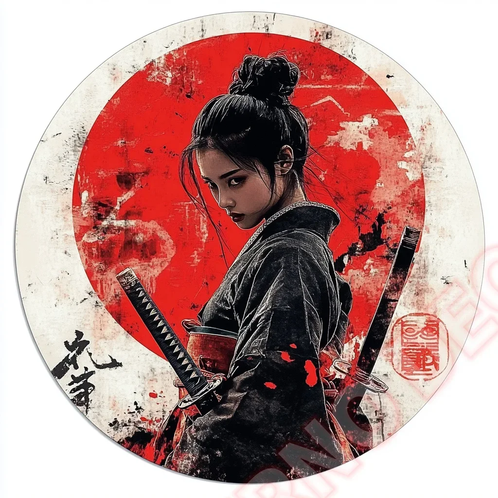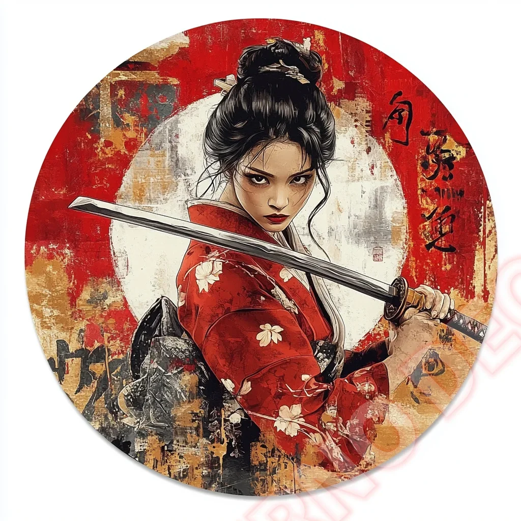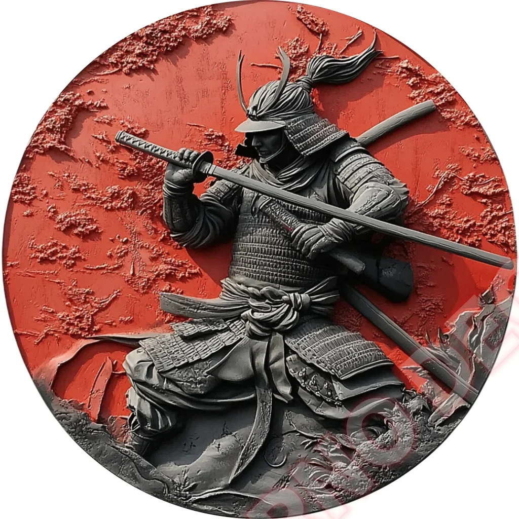 Imagine adding a bold, artistic touch to your space with this exquisite circular wall art. Crafted from high-quality aluminum, it features a striking silhouette of a traditional Japanese samurai in side profile, dressed in layered armor with a prominent crest on the helmet. The design is set against a textured, vivid red background that amplifies the dramatic effect. The weatherproof material ensures it withstands any outdoor environment, making it suitable for patios, cafes, or garage walls. Its lightweight construction and pre-drilled holes allow for easy installation. Whether you want to create a unique focal point or complement your existing decor, this piece offers a perfect blend of tradition and modern rugged style.