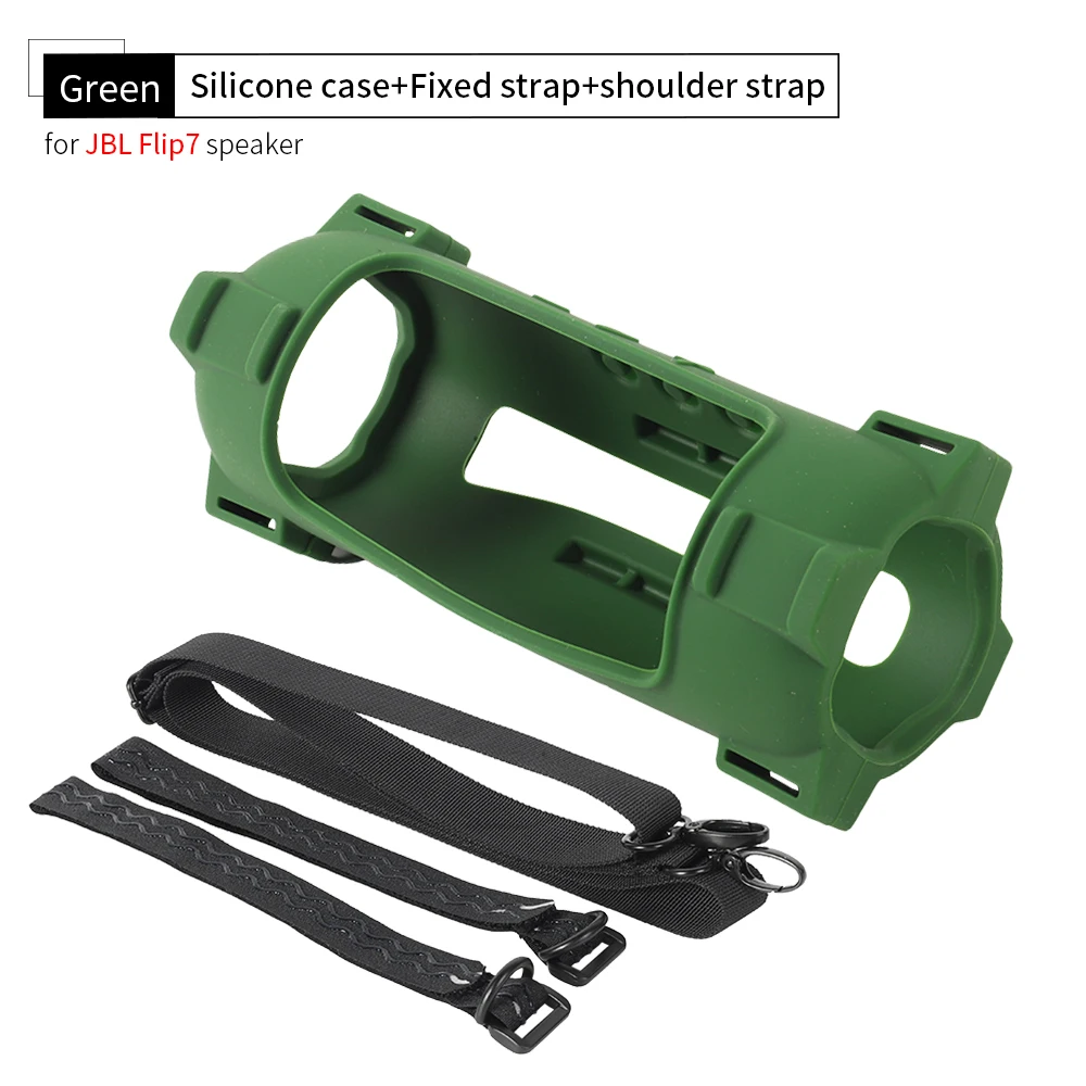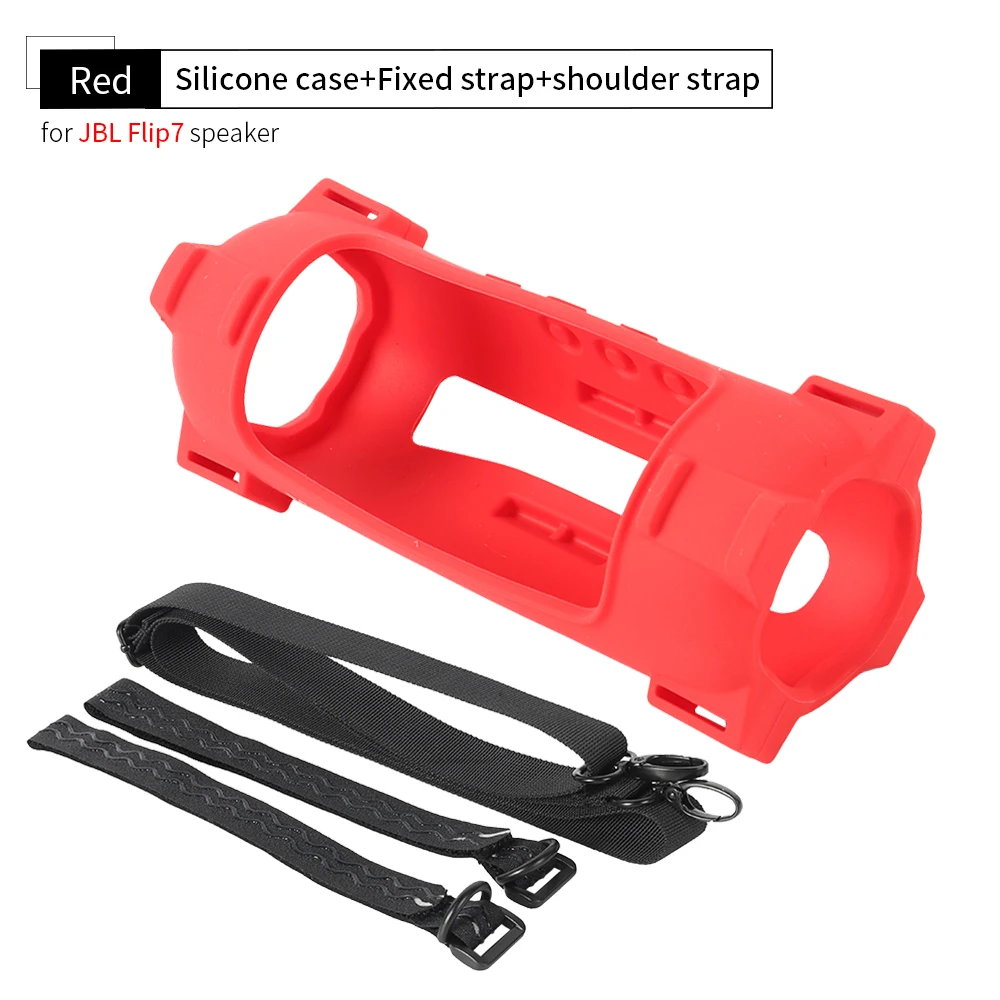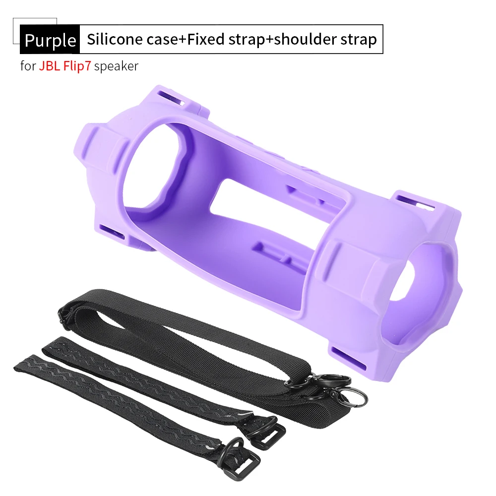 The silicone protective case for the JBL Flip7 speaker offers a perfect blend of style and durability, measuring 19.5 cm in length, 7.5 cm in width, and 8 cm in height, weighing just 140 grams. Crafted from high-quality silicone, it features precise mold openings for a snug fit while allowing full functionality of the audio system. The case includes textured surfaces for enhanced grip and attachment points for straps, making it easy to carry and mount on bicycles. Available in vibrant colors—red, black, green, navy blue, orange, gray, and purple—this case ensures your speaker remains protected during outdoor adventures.
