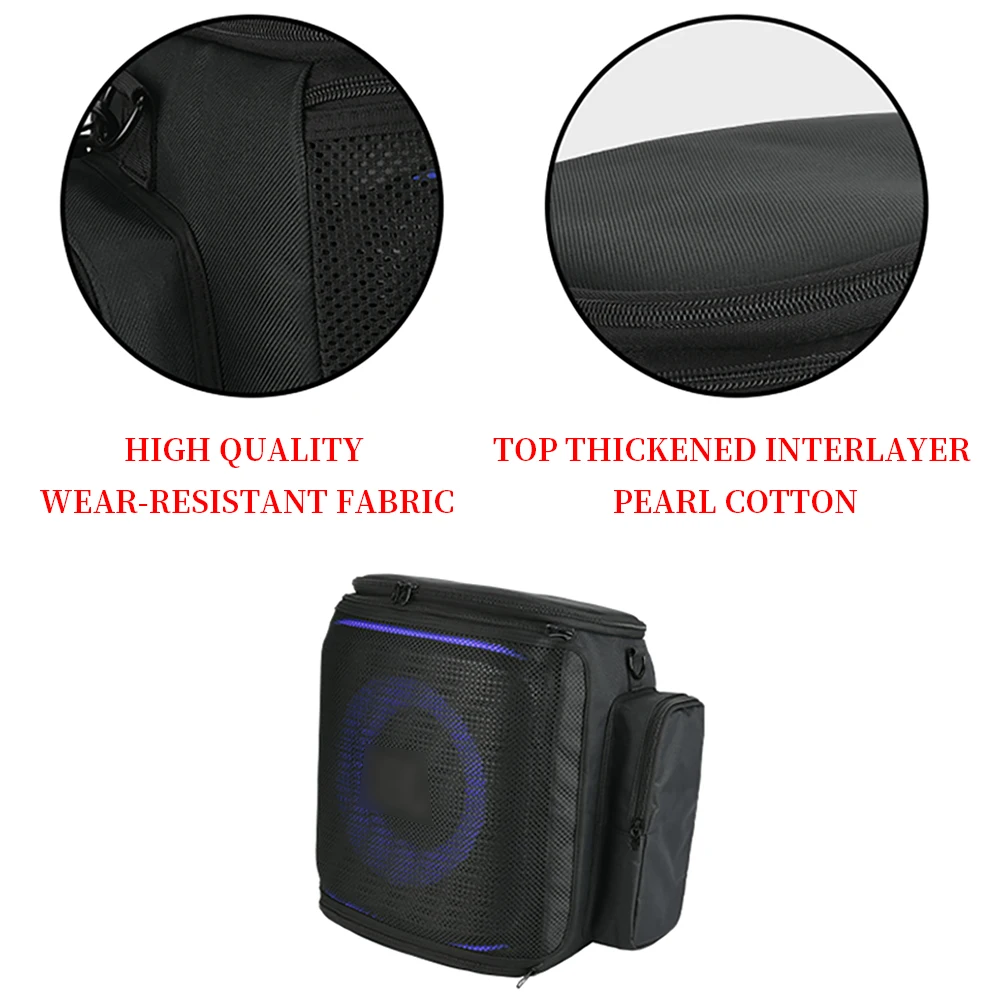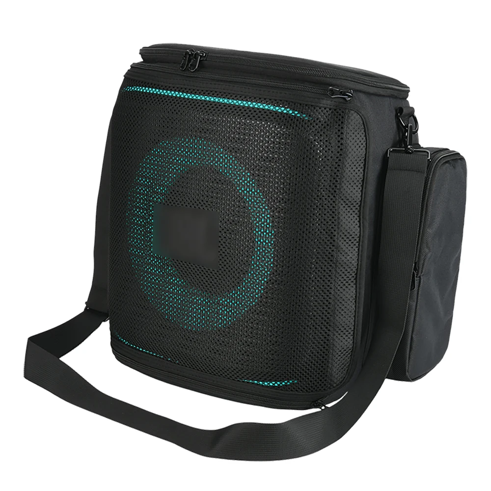 - Features a semi-mesh front panel that allows sound to permeate while protecting the speaker during transport.