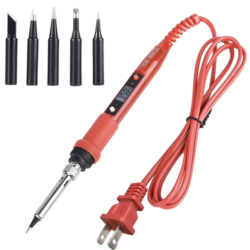 - This 80W soldering iron features a precise temperature range of 180°C to 500°C, ideal for detailed electronics repair, DIY creations, or professional soldering needs with consistent control.