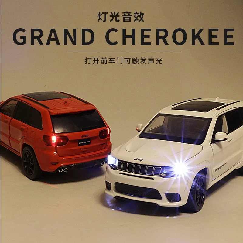 - 1:32 scale diecast model of the Jeep Grand Cherokee.