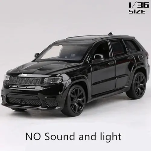 This 1:32 scale diecast model of the Jeep Grand Cherokee beautifully emulates the sleek and robust style of its real-life counterpart. Finished in a stunning glossy black, this model captures intricate details, including a realistic grille with a central Jeep logo and finely crafted headlights. The large sporty black wheels come with a detailed tread design that enhances its off-road appeal, while tinted windows and carefully designed mirrors elevate its aesthetic. Made from high-quality metal and plastic, this product stands out as both a durable toy and a collector's item, designed for ages 4 and up. Enjoy sound and light functions that add to the fun of this exceptional vehicle!