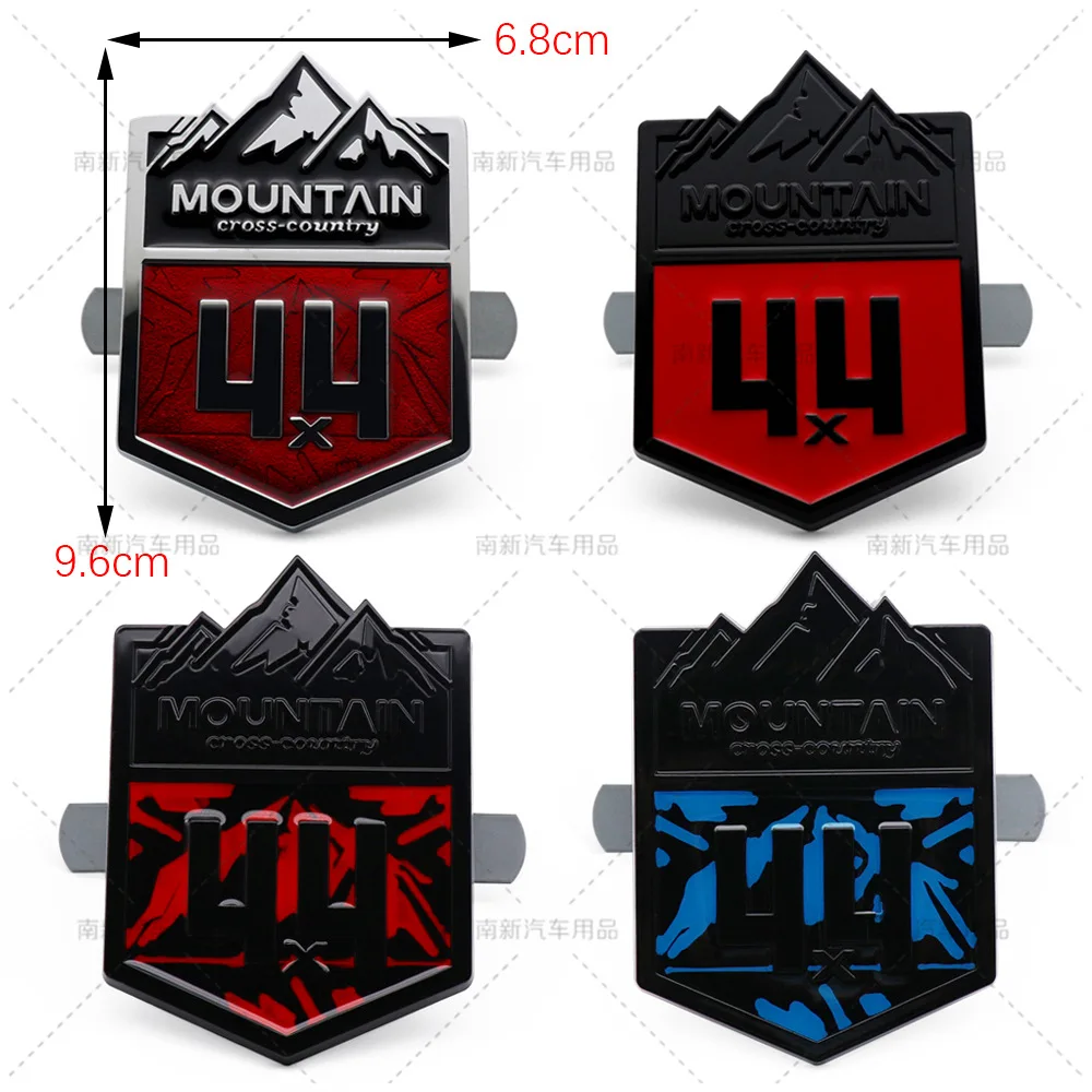 Elevate your Jeep's appearance with this meticulously crafted aluminum alloy badge. Measuring 9.5 cm long, 6.8 cm wide, and 0.5 cm high, it offers a sleek yet durable upgrade suitable for models like Grand Cherokee, Wrangler, Compass, and Patriot. The design features bold mountain graphics, with color variations ranging from classic black to vibrant red and blue backgrounds, each highlighting the iconic “44” in contrasting tones. The top badges display stylish mountain peaks alongside incised “MOUNTAIN” text, adding an adventurous touch, while the lower badges showcase three-dimensional raised numbers for a striking visual. The flat gray mounting tab ensures easy installation, making this emblem perfect for outdoor enthusiasts seeking a rugged aesthetic and reliable performance. Crafted to ISO 9001 standards, this badge combines style and durability effortlessly.
