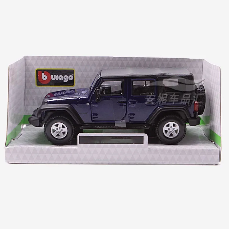 Experience the rugged charm of the Jeep Wrangler with this 1:32 scale diecast model, measuring 14×6.2×4 cm and crafted from alloy for durability and detailed craftsmanship. Its deep glossy blue finish highlights the iconic boxy shape, complemented by realistic features such as round headlights, a prominent front grille with vertical slats, black roof and bumpers, white rims on textured off-road tires, and clear windows revealing intricate interior details. Designed as a collectible decoration, this fragile, non-electric model is ideal for display and mature enthusiasts aged 14 and above. It offers a striking representation of the legendary rugged appeal and craftsmanship, perfect for collectors seeking a detailed, high-quality miniature.