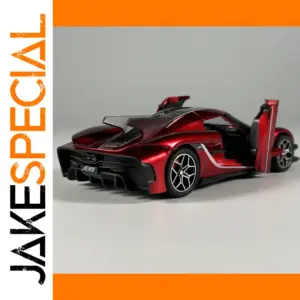 Imagine adding a striking touch of luxury and speed to your collection or decor with this exceptional 1:32 scale Jesko Absolut diecast model. Crafted from durable alloy metal, it offers a sleek, solid feel that captures every aerodynamic curve and sharp line of the original supercar. Based on a vibrant red, glossy finish with contrasting black accents, this model exudes excitement and elegance. The intricate details, including black and silver multi-spoke wheels, textured black engine cover, and rear wing, faithfully replicate the high-performance spirit of the Jesko Absolut. With gull-wing doors and finely sculpted contours, it embodies a perfect blend of sophistication, power, and craftsmanship. This model is ideal for enthusiasts and collectors seeking a visually captivating display piece.