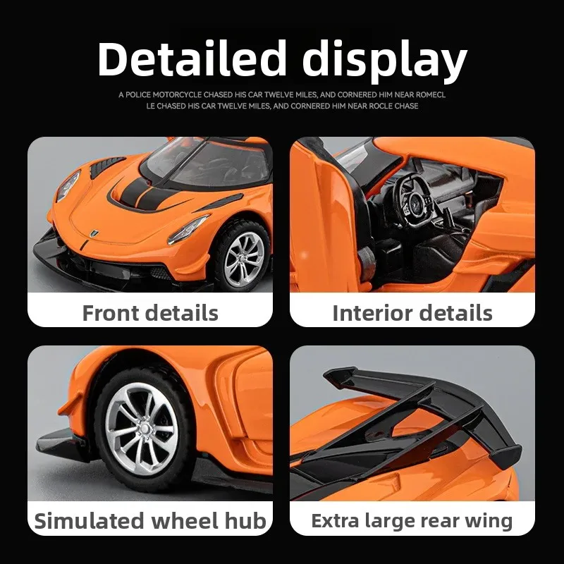 Seize the opportunity to own a stunning, high-simulation replica of the Jesko supercar. Its realistic design and impeccable craftsmanship make it a captivating display piece perfect for automotive lovers and collectors alike. Imagine having this detailed model as part of your collection, proudly showcasing the sleek lines and sporty style of one of the most iconic supercars. Elevate your space and celebrate automotive excellence—this model is more than just a collectible; it's a statement of passion for high-performance and design. Order now to enrich your collection with this exceptional piece.