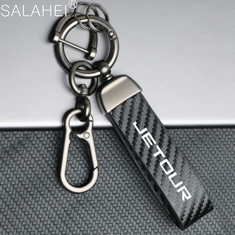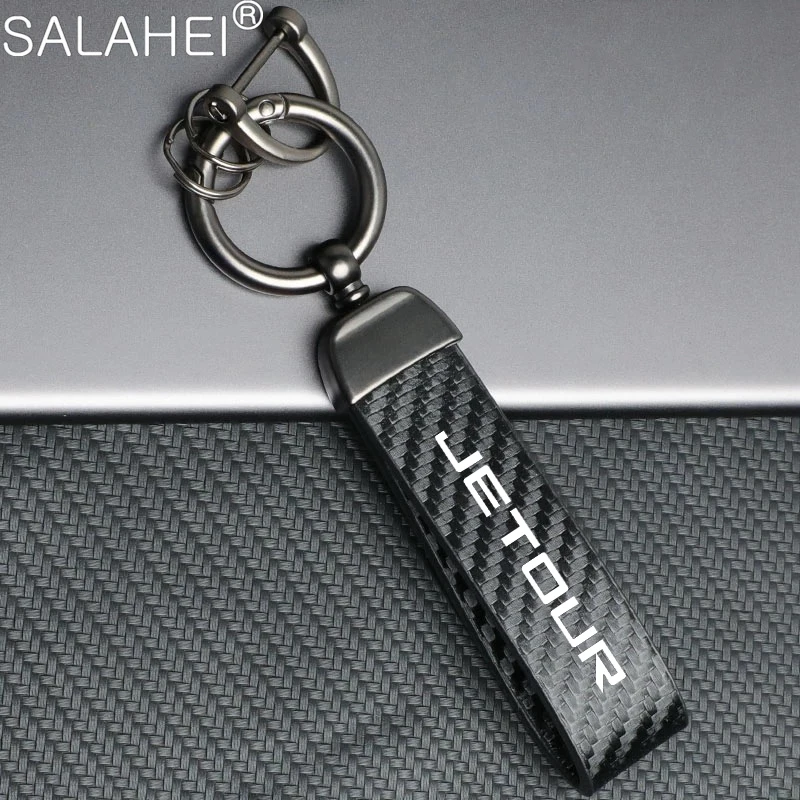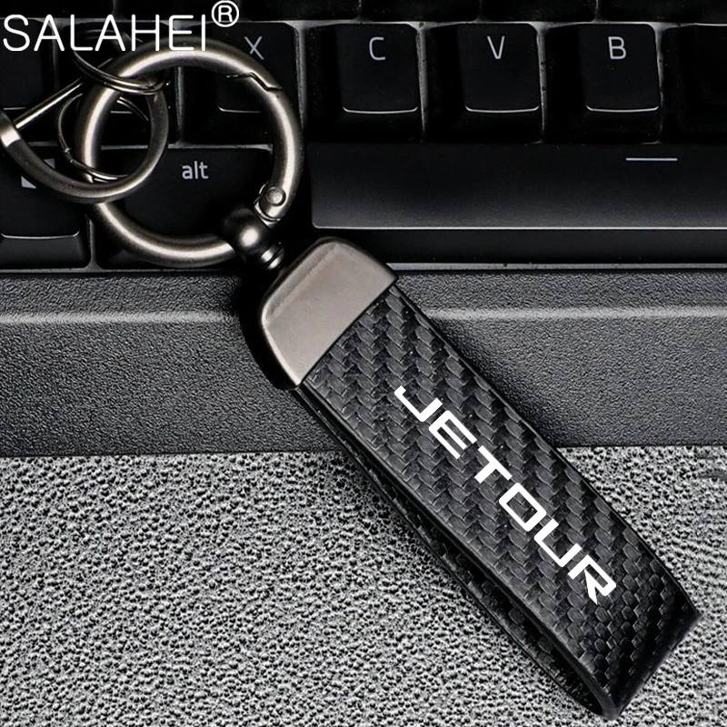 Enhance your vehicle’s style with this sleek carbon fiber-style metal keychain ring, designed specifically for Jetour models including X70, X90, X70S PLUS, Dashing X-1, and X95 L6. Measuring 1-5mm with minor manual variations, it features a textured, woven pattern on a glossy black strap that boldly displays “JETOUR” in white, creating a sporty, high-tech look. Crafted from durable metal with a high-quality finish, this accessory serves both as a decorative pendant and protective keyring. Easy to attach to your car keys or accessories, it adds a personalized touch to your interior, combining modern aesthetics with practical function.