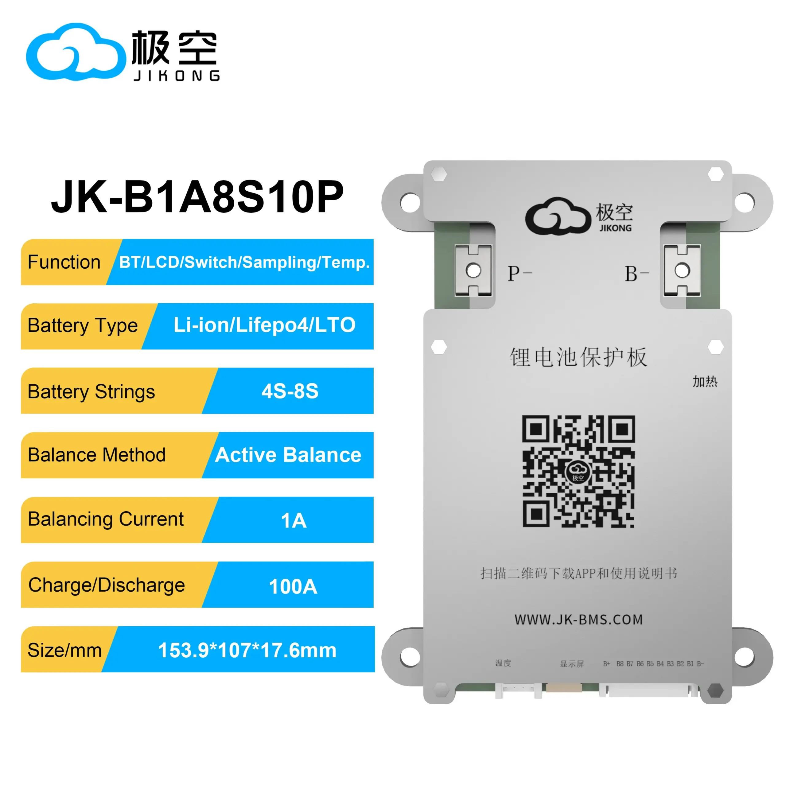 - Available in models JK-B1A8S10P and JK-B1A8S10P-HCR, both delivering reliable active balancing and smart electronic features for enhanced battery management.