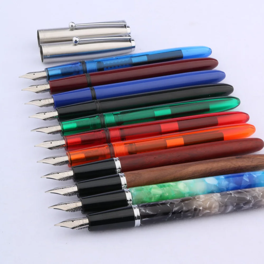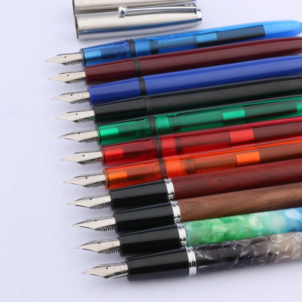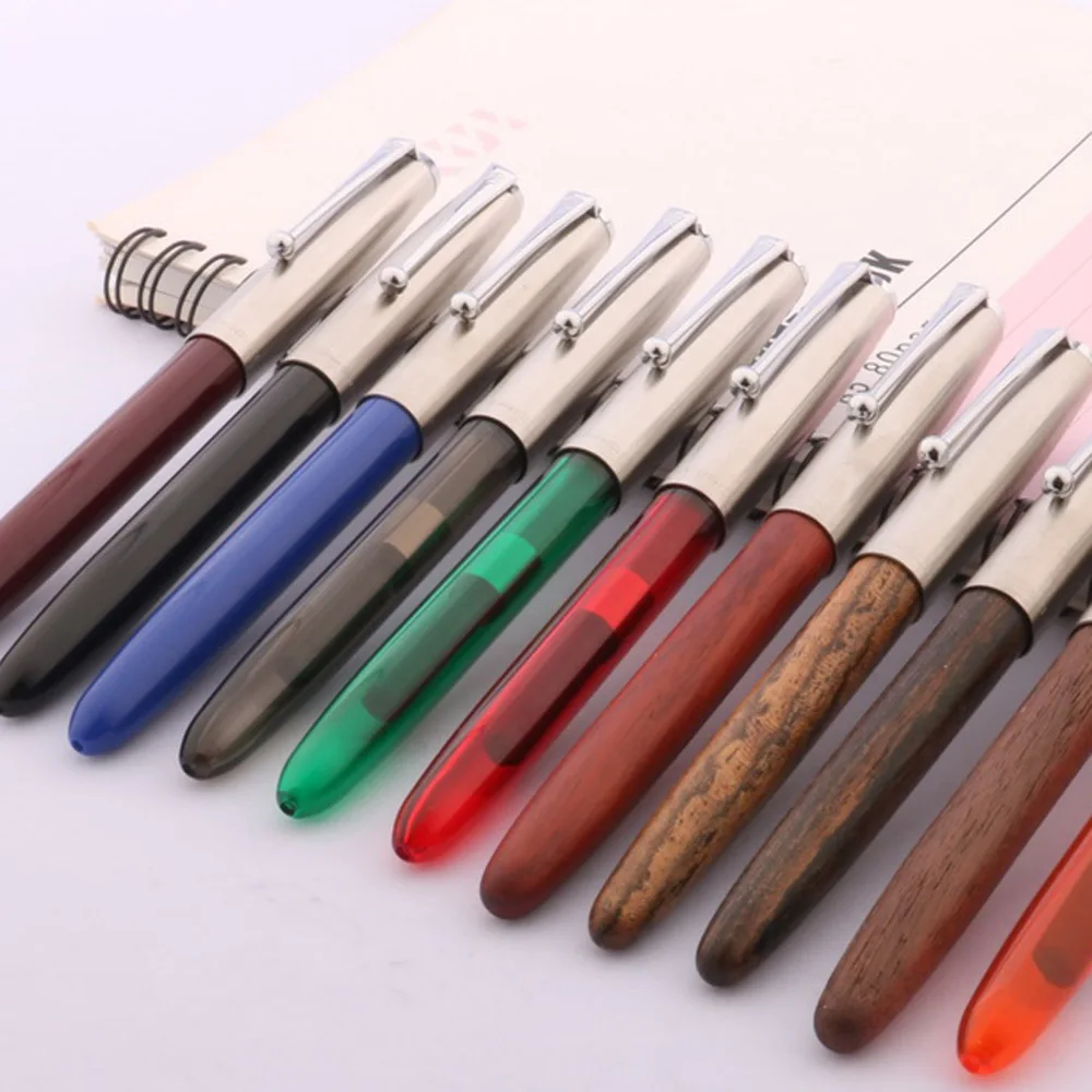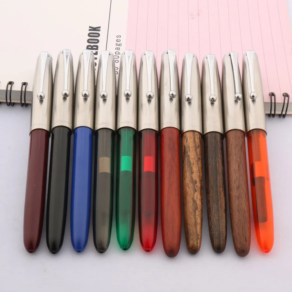 Experience the perfect blend of style and functionality with this Jinhao 51-A fountain pen. Crafted with a transparent acrylic and plastic body, it offers visibility of ink levels while showcasing a sleek, modern design. The vibrant array of translucent colors, including deep blue, rich red, lively orange, and natural wood finish, creates an eye-catching collection that inspires creativity and professionalism. The polished, smooth surface with a metallic band near the tip adds a touch of sophistication. Equipped with a sturdy stainless steel nib and a fine 0.5mm writing point, this pen delivers precise, effortless strokes — ideal for everyday writing, note-taking, or gift-giving. Its lightweight construction ensures comfortable handling during extended use.