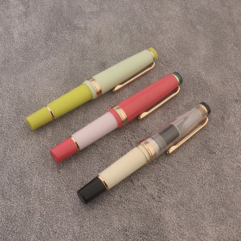 Experience the perfect blend of style, portability, and functionality with this JinHao 82 Mini Fountain Pen. Crafted from durable acrylic, it features a vibrant pastel pink color complemented by refined gold accents, adding a touch of sophistication to your writing tools. Its compact cylindrical design measures 106mm in length with a 14mm diameter, making it ideal for those who value practicality without sacrificing style. Weighing only 18 grams, it offers effortless handling for extended writing sessions. The high-quality metal alloy nib available in EF, F, or M sizes ensures precise, fluid lines with a 0.5mm point for fine details. Whether you're working, doodling, or collecting, this pen elevates your experience with its ergonomic design and eye-catching color options.