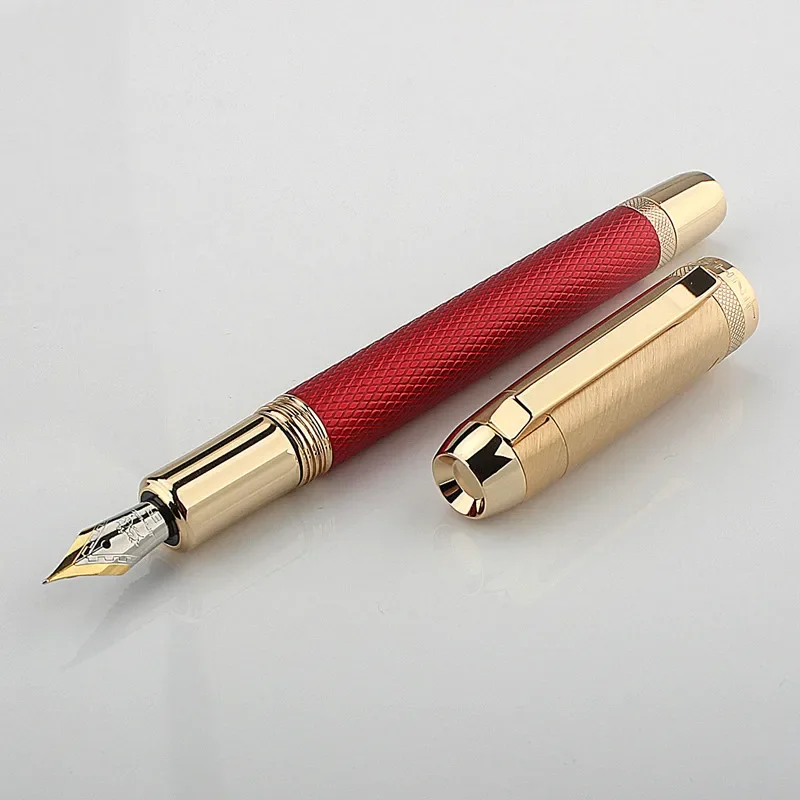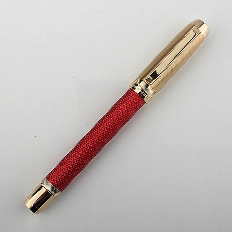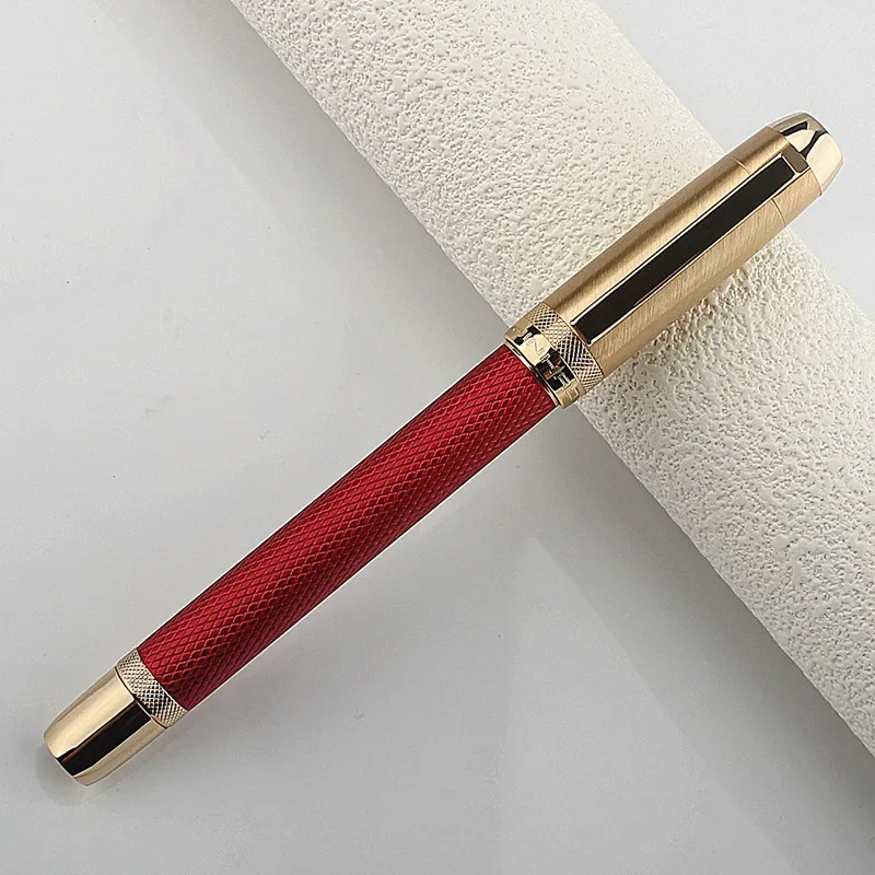 - Features a vibrant red textured metal body with a diamond pattern grip for elegant aesthetics and comfortable handling during long writing sessions.