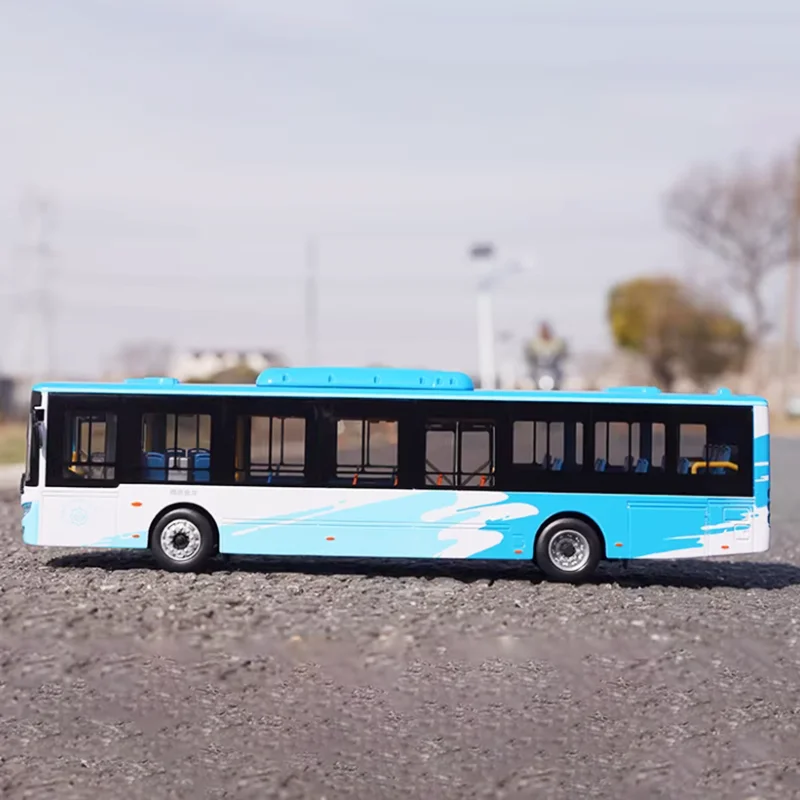 Imagine adding a sleek, modern bus replica to your collection, bringing a dynamic urban transit vibe to your display. Carefully crafted from durable alloy, this diecast model captures the essence of the Jinlong Kaiwo New Energy Bus in remarkable detail. Its light blue body with contrasting black accents on the windows and doors creates a visually striking appearance. The expansive, clear windows, realistic side mirrors, and intricately designed headlights give it a lifelike quality. Its compact 26 cm length makes it perfect for display on shelves or desks. Whether you’re a transit enthusiast or a collector, this model allows you to bring a piece of contemporary city transport into your space with finesse and authenticity.