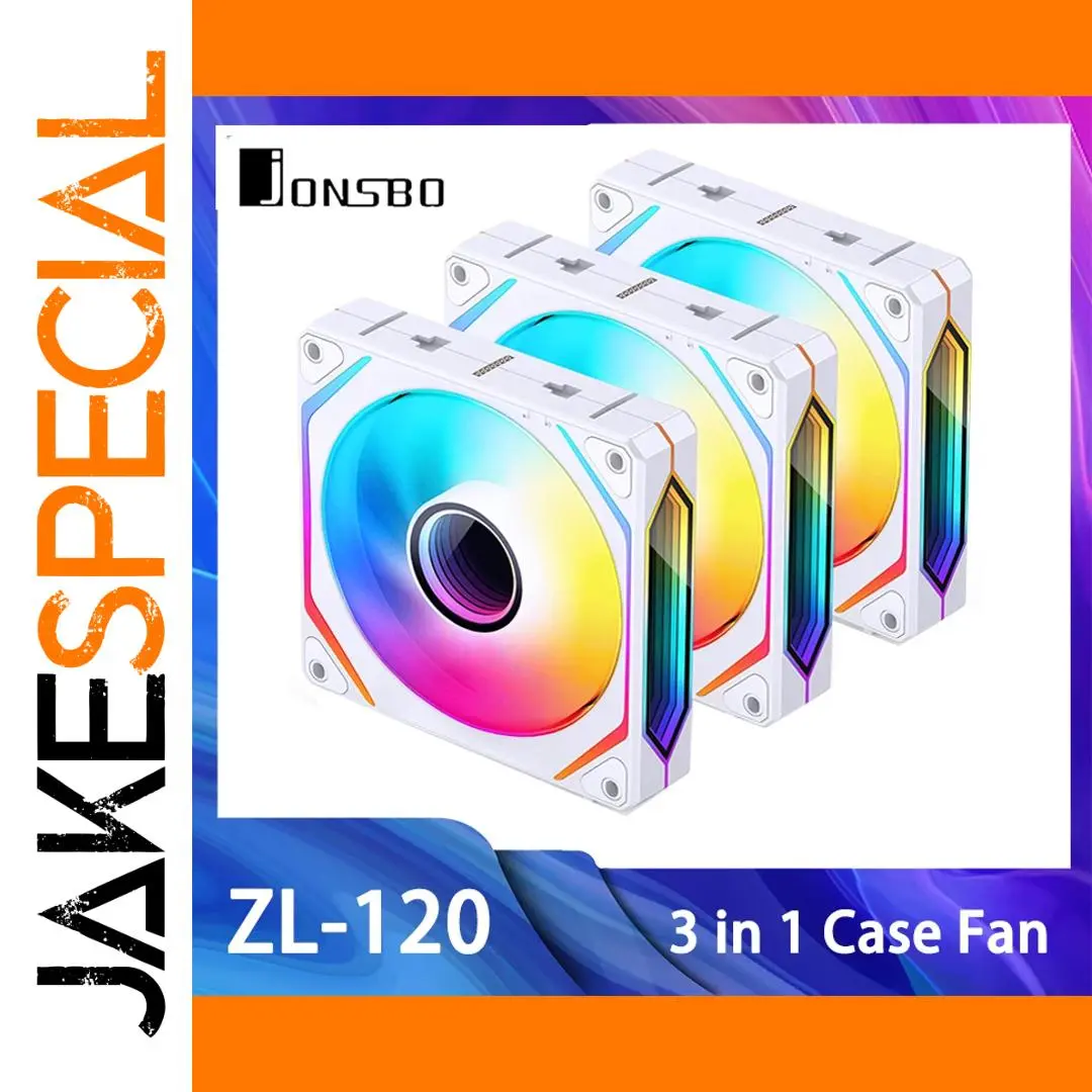 Elevate your PC build with the JONSBO ZL-120 3-in-1 ARGB PC case fan, a 120mm cooling solution featuring seven aerodynamic white blades within a sleek white square frame with rounded edges. Its vibrant multi-colored ARGB lighting ring supports customizable rainbow gradients, adding a striking glow to your setup. Operating between 800 and 1800 RPM at 12V, it delivers a powerful airflow of 60.35 CFM while maintaining low noise levels of 23 dBA. Equipped with a durable fluid bearing, it offers an impressive lifespan of around 100,000 hours. Compatible with 4-pin PWM and 3-pin ARGB connectors for precise control, this fan is perfect for case and radiator cooling, ensuring both aesthetic appeal and reliable performance.