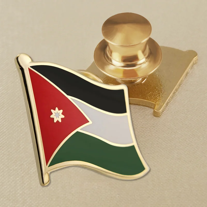 Enhance your collection with this vintage-inspired enamel craft badge, featuring a flag-shaped design inspired by European motifs. Crafted from gold-plated copper, it offers four vibrant color variations—Jordan A, Jordan B, Jordan C, and Jordan D—each showcasing bold, contrasting blocks of color. The smooth, glossy enamel surface highlights its bright, vivid hues and intricate details, while the butterfly clasp ensures secure attachment to your clothing or accessories. Perfect for decorative use and personal crafts, this customizable lapel pin adds a touch of elegance and nostalgia to your style, making it an ideal accessory for any enthusiast seeking a unique and meaningful badge.