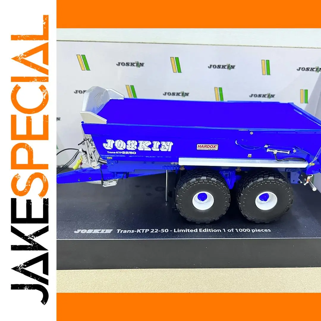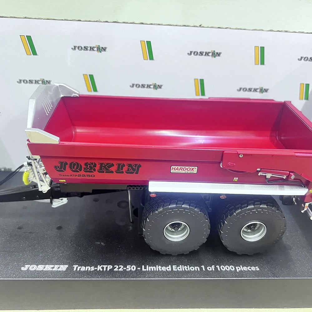 Discover the intricate craftsmanship of this stunning 1:32 scale die-cast miniatures of the Joskin Trans-KTP22/50 dump trailer. Crafted with a realistic metallic alloy finish, it features vibrant blue coloring with a glossy surface that mimics real steel. The model boasts a fully enclosed design with precise detailing, including bold white logos such as “JOSKIN” and the “HARDOX” label, complemented by black tires with detailed tread patterns and white hubcaps with blue centers. The framework underneath displays metallic components, hinges, and support structures that add to its industrial authenticity. Perfect for enthusiasts and collectors, this static model elevates any display with its superb realism and craftsmanship, making it a perfect gift or decorative piece for any professional or hobbyist setup.