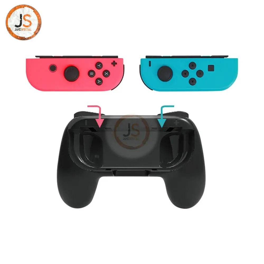 - Technical specifications: High-strength ABS plastic, anti-slip textured handle, fits Joy-Con controllers securely, available in Blue-Red, Black, or Red-Blue color scheme.