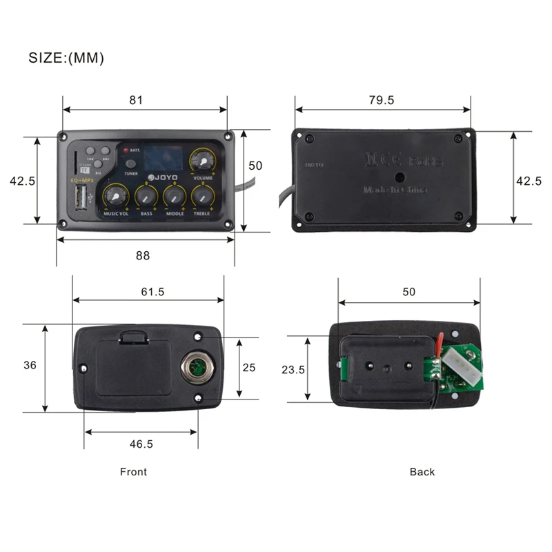 - Compact dimensions of 79mm x 49mm x 26mm, designed for easy integration into acoustic guitar setups.