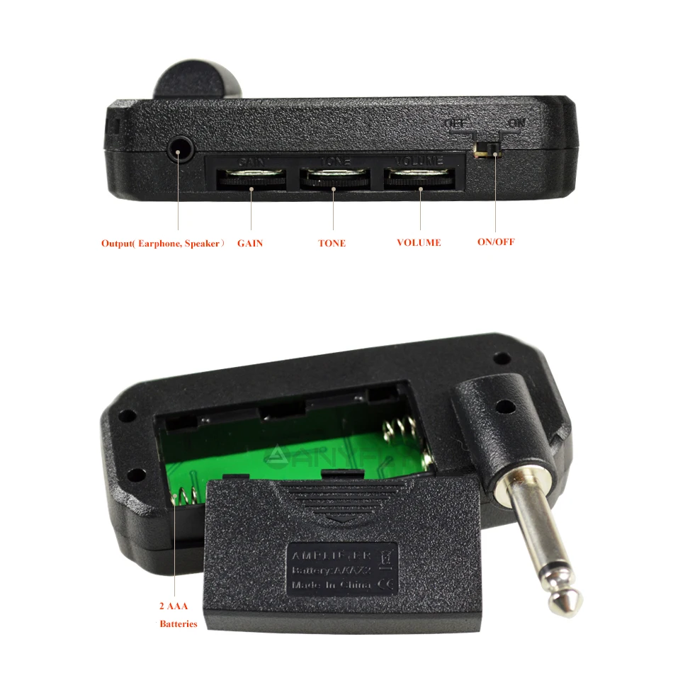 Experience versatile guitar tone with the JOYO JA-03 Mini Guitar Amplifier, measuring 8.9 x 7.7 x 2.6 cm and weighing only 41g, crafted from durable ABS plastic. It offers six sound effects: Metal, Lead, Super Lead, Tube Drive, Acoustic, and English Channel, catering to a variety of musical styles. Equipped with 3.5mm jacks for earphones, speakers, and MP3 input, it allows seamless practice sessions anytime, anywhere—ideal for on-the-go players. Powered by two AAA batteries (not included), this sleek, portable amplifier is designed to enhance your guitar experience while fitting comfortably into your hand or gig bag.