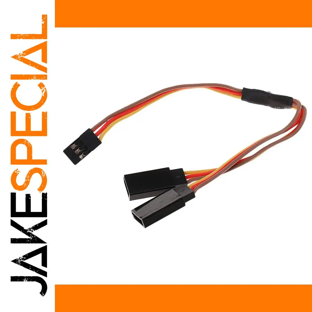 Enhance your RC models with this 150mm dual-channel servo extension Y cable, designed for JR and Futaba systems. Crafted from durable plastic with metal connectors, it features a sleek black insulation with three internal wires—red, yellow or orange, and brown or black—that run parallel for a vibrant contrast. The rectangular connectors have recessed silver metal pins for a secure fit, providing reliable power and signal extension for servos and ESCs in planes, drones, helicopters, and cars. Made for precise, seamless connections, this extension cable ensures optimal performance and easy installation for hobbyists seeking a dependable upgrade to their remote control setups.