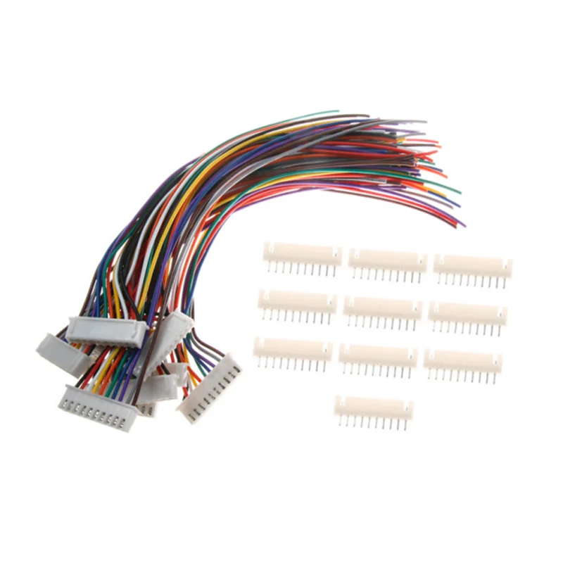 Imagine effortlessly making secure electrical connections with this comprehensive set of JST XH2.54mm wire connectors. Designed for versatility, each set includes male and female sockets in configurations ranging from 2 to 10 pins, perfect for a wide variety of projects. The connectors feature a sleek, minimalist rectangular white plastic housing, precisely molded with evenly spaced slots for reliable metal pin placement. Brightly colored, 20cm long, 26 AWG wires connect seamlessly, helping you identify different circuits easily. Whether you're building, repairing, or prototyping, these connectors ensure a tidy, professional finish. Their sturdy construction offers durability and confidence in every connection, enhancing your electrical setup with style and functionality.