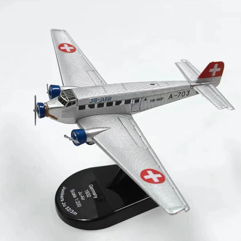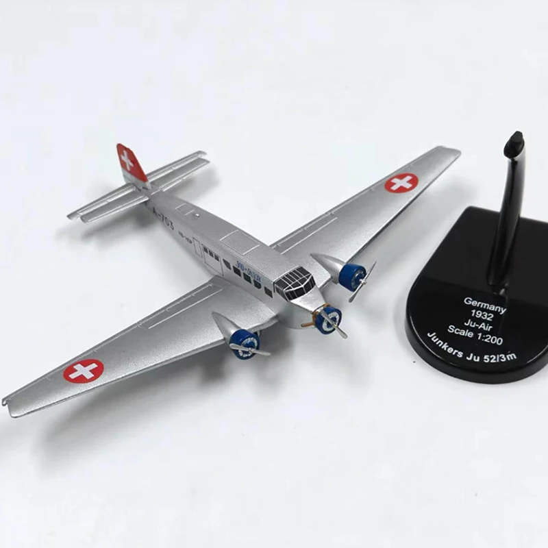 Step into the world of vintage aviation with this meticulously crafted Diecast Ju 52 airplane model. At a scale of 1:200, this sleek replica measures about 9 cm in length with a 15 cm wingspan, perfect for display or collection. Made from durable alloy, the model boasts a shiny silver finish with detailed design elements, including black markings, window decals, and patriotic insignia on the wings and tail. Its streamlined fuselage and etched panel lines add a realistic touch, capturing the essence of this classic aircraft. Ideal for aviation enthusiasts and collectors seeking a memorable piece to admire daily, this model combines craftsmanship with historical elegance, making it an excellent addition to any display.