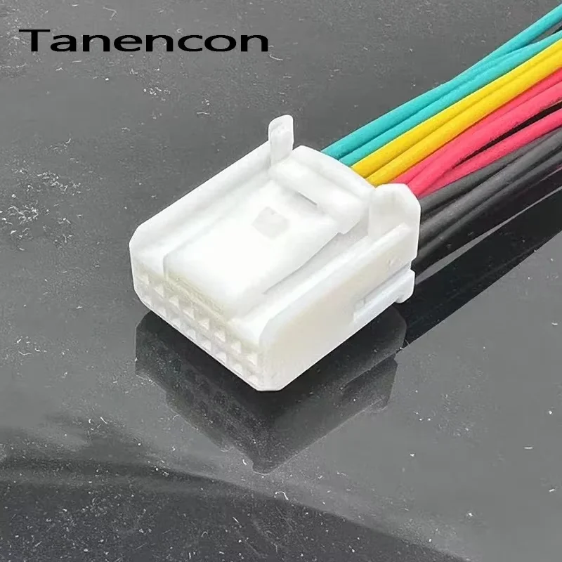 This versatile 16-pin automotive wire connector set is expertly designed for seamless compatibility with Nissan, Toyota, and Kia vehicles. The connectors come with both male and female ends, ensuring a reliable connection for audio navigation and rearview systems. Crafted from durable white plastic, it features a secure locking mechanism for a snug fit. With five color-coded wires—green, yellow, red, black, and blue—individually insulated for flexibility, installation becomes a breeze. Enhance your automotive systems with this essential wiring solution, ensuring dependable performance on the road.