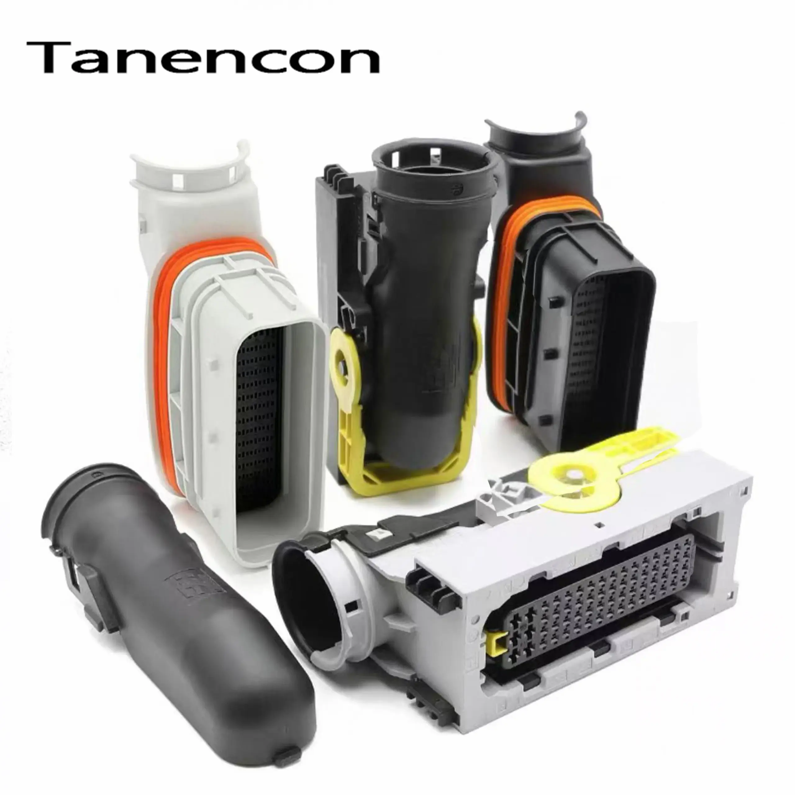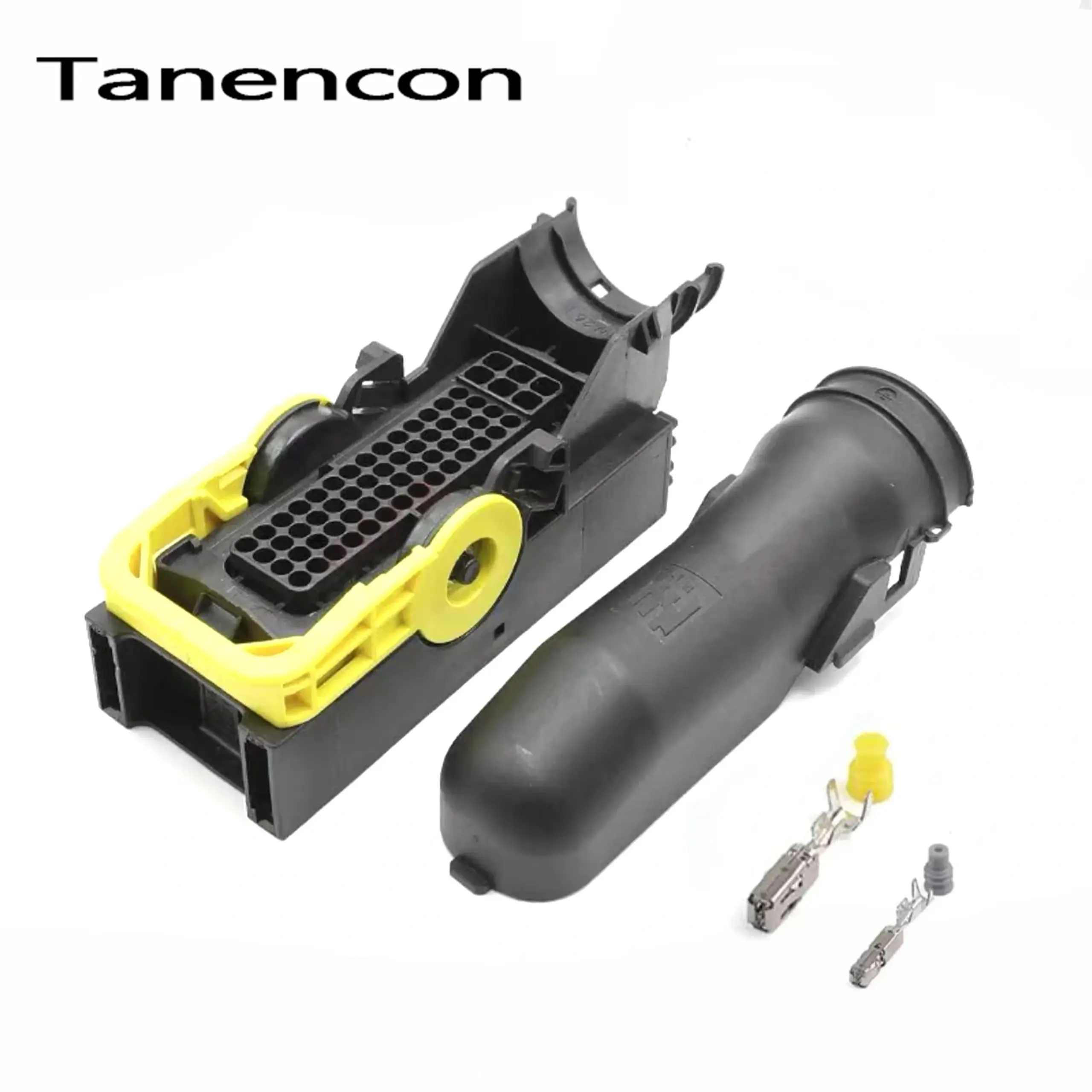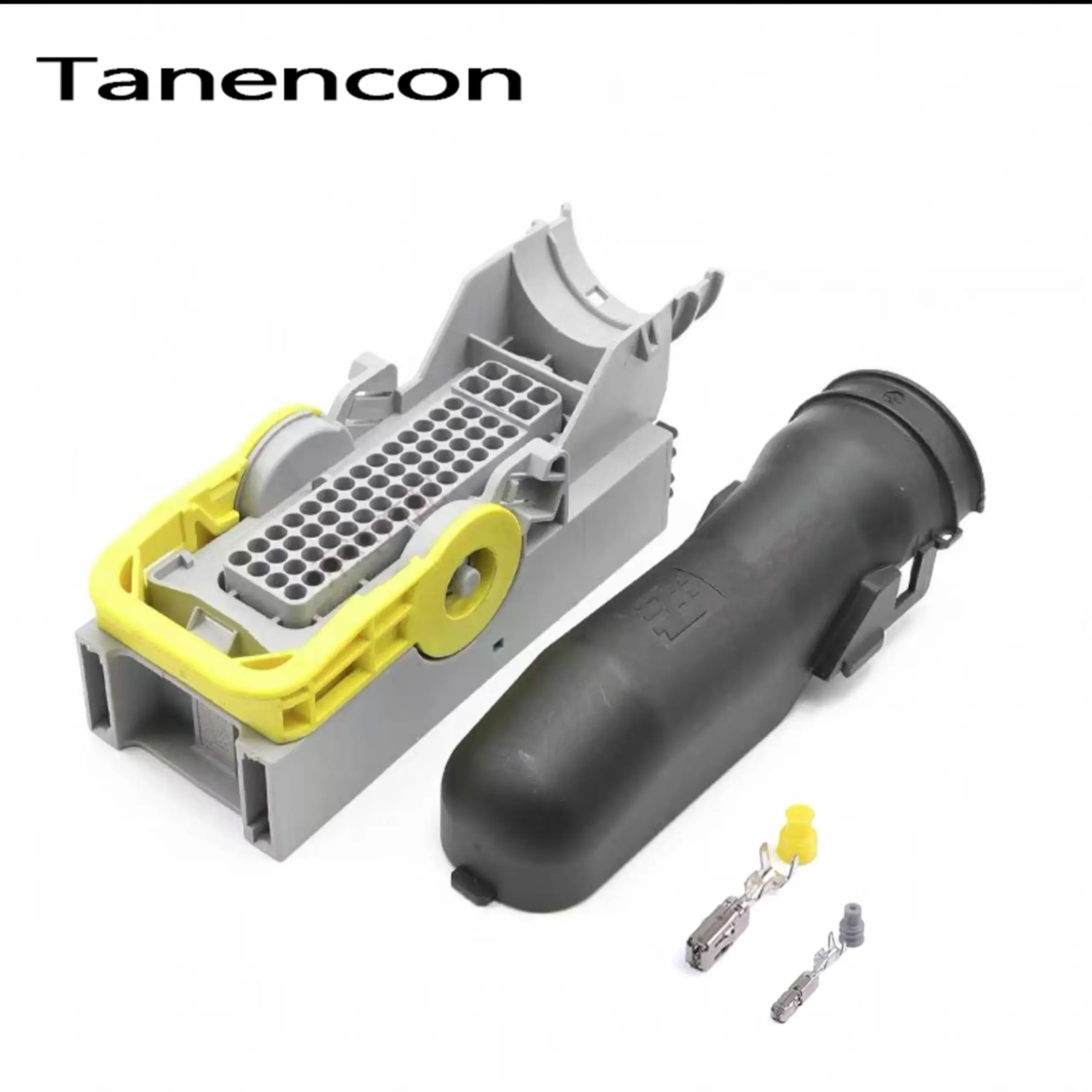 The JYCLC 62 Pin ECU DCU Urine Pump Cable Connector is an essential component for your automotive needs. Engineered for durability and functionality, this connector features a matte black rectangular housing with a distinctive yellow locking mechanism that ensures secure connections. The connector plug is designed for a smooth fit, tapering toward a narrower end, allowing easy and efficient insertion into your vehicle's computer board. The added terminals and waterproof skin plugs offer enhanced protection, making it perfect for use in trucks. Upgrade your vehicle's electronic reliability with this high-quality connector, ensuring years of dependable performance.