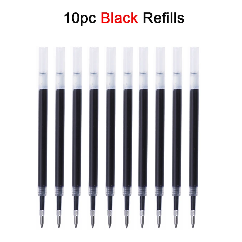 - Includes transparent frosted packaging, allowing clear visibility of the pens, with technical specifications such as compatible ink colors including black, blue, and red, and suitability for office and study environments.