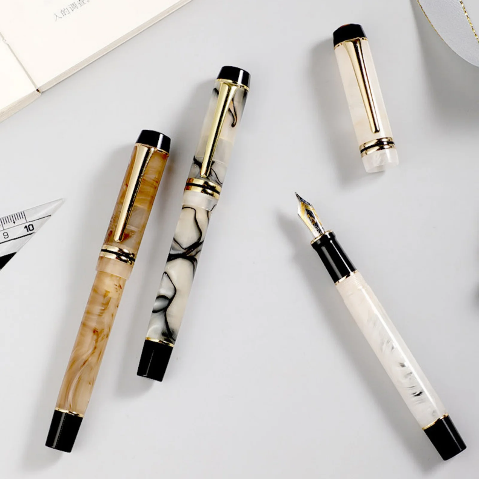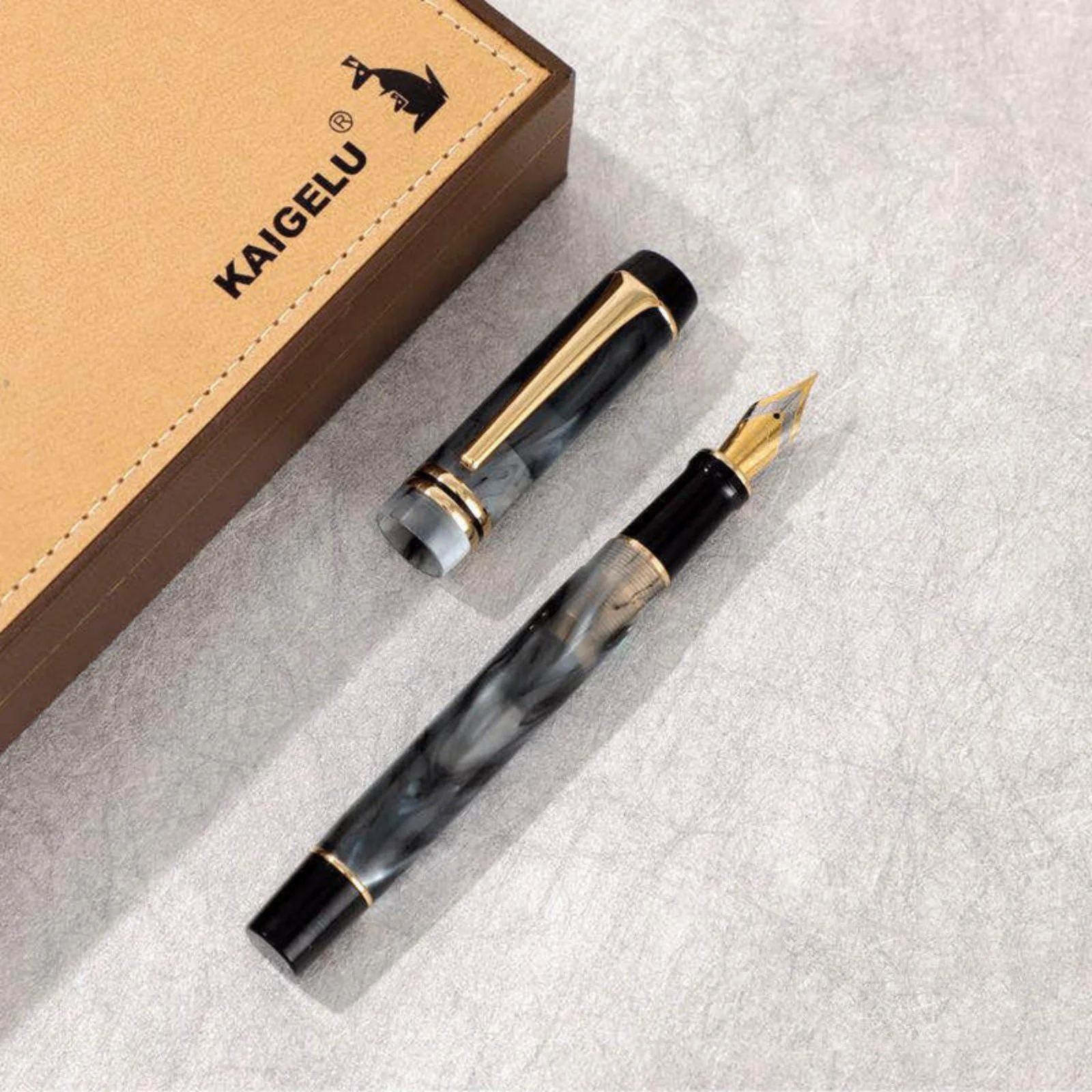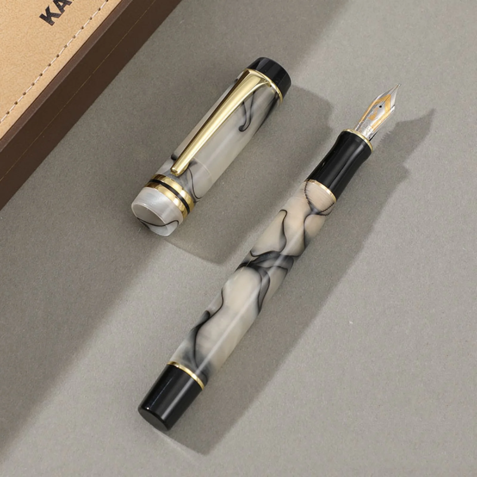 Experience luxurious writing with the KAIGELU 316 Acrylic Fountain Pen, featuring a stainless steel nib available in Extra Fine (EF) and Medium (M) sizes, and four elegant color options labeled B, C, D, and A. The pen boasts a refined design with smooth surfaces, intricate marbling patterns—ranging from warm beige with gold accents to striking black, white, and gray swirls—and polished metallic highlights that evoke timeless elegance. Its standard nib type ensures precise, effortless writing, making it perfect for collectors and enthusiasts who appreciate craftsmanship and style. Crafted with safety in mind, it contains no high-concern chemicals, offering a truly sophisticated and safe writing experience.