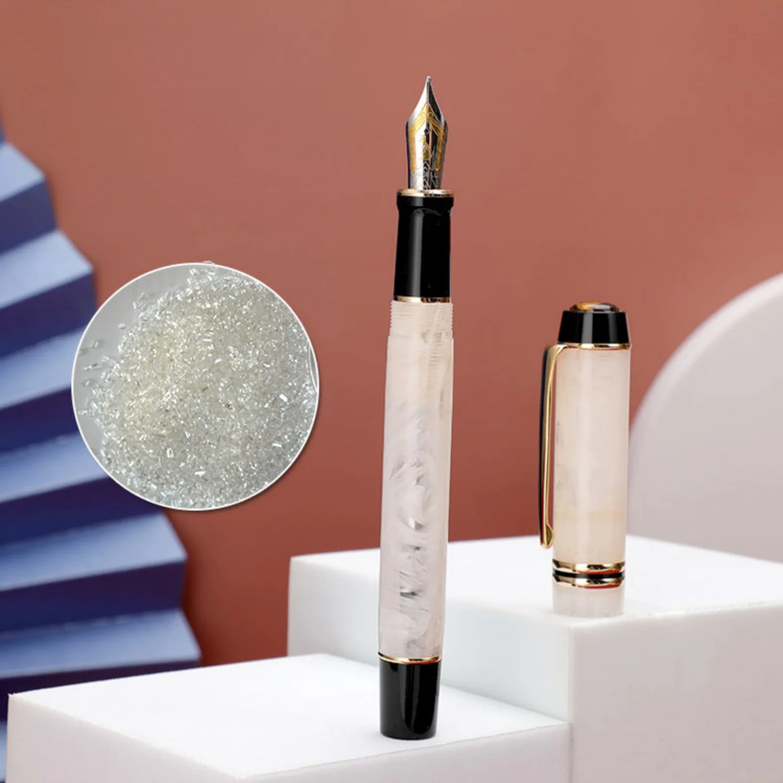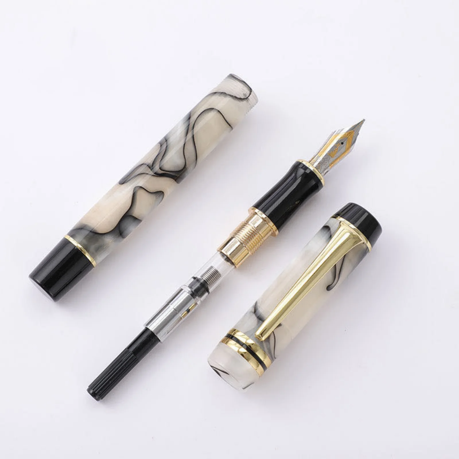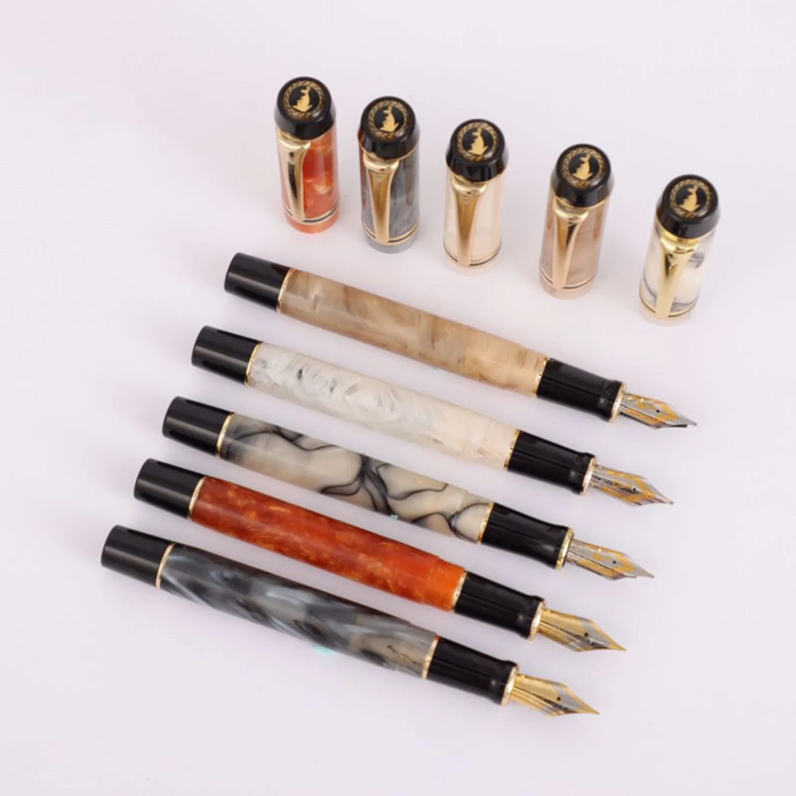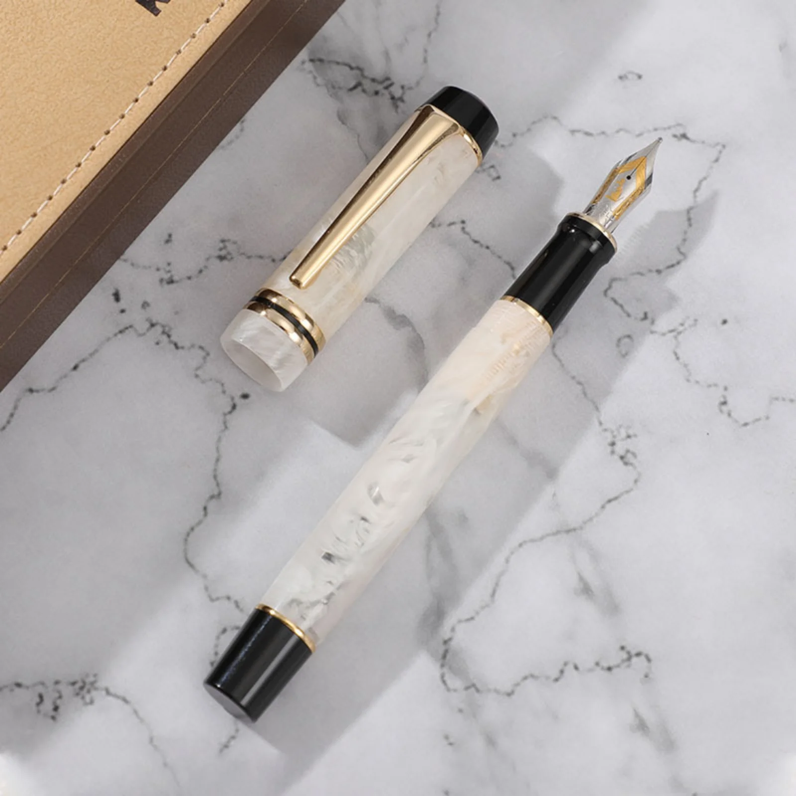 Experience luxurious writing with the KAIGELU 316 Acrylic Fountain Pen, featuring a stainless steel nib available in Extra Fine (EF) and Medium (M) sizes, and four elegant color options labeled B, C, D, and A. The pen boasts a refined design with smooth surfaces, intricate marbling patterns—ranging from warm beige with gold accents to striking black, white, and gray swirls—and polished metallic highlights that evoke timeless elegance. Its standard nib type ensures precise, effortless writing, making it perfect for collectors and enthusiasts who appreciate craftsmanship and style. Crafted with safety in mind, it contains no high-concern chemicals, offering a truly sophisticated and safe writing experience.