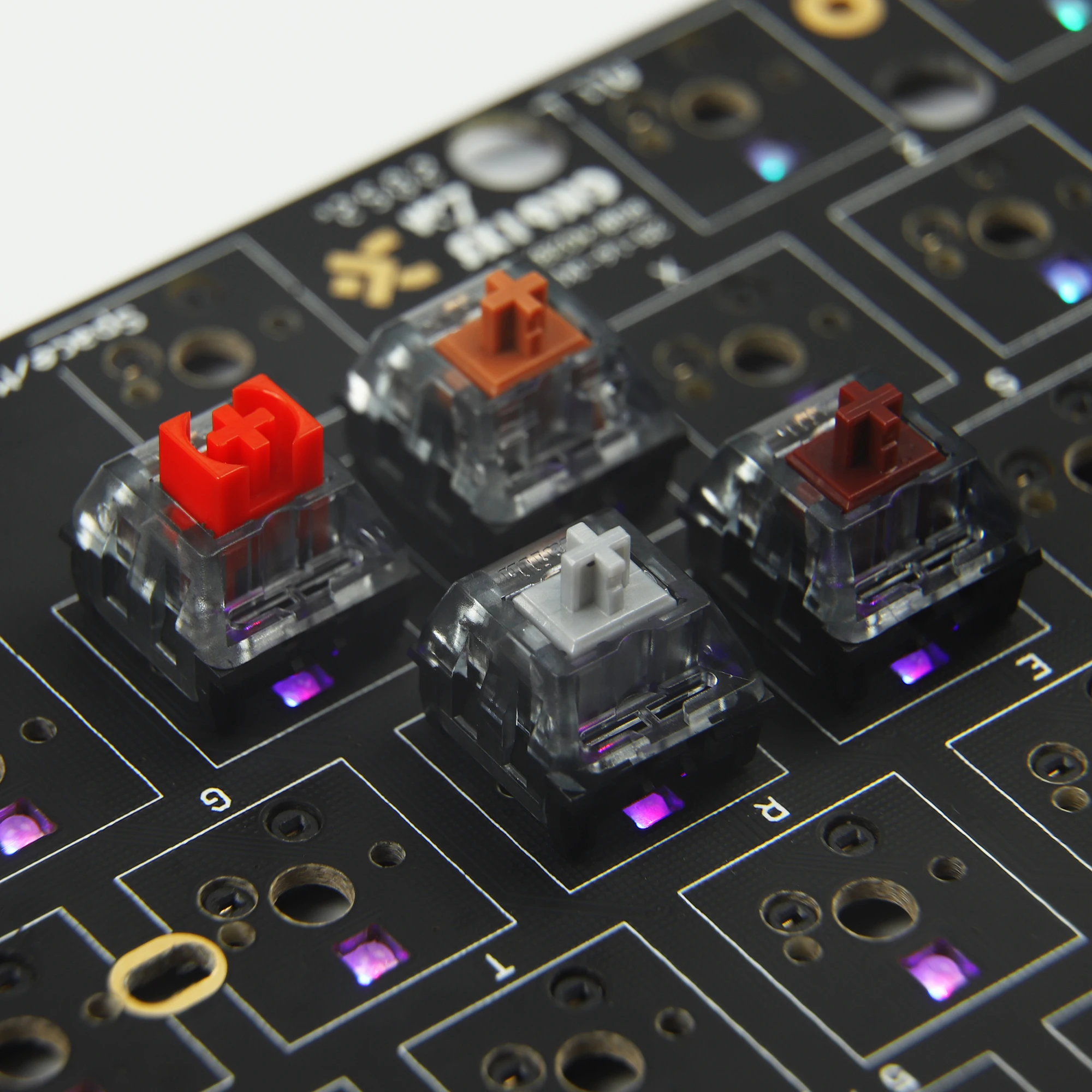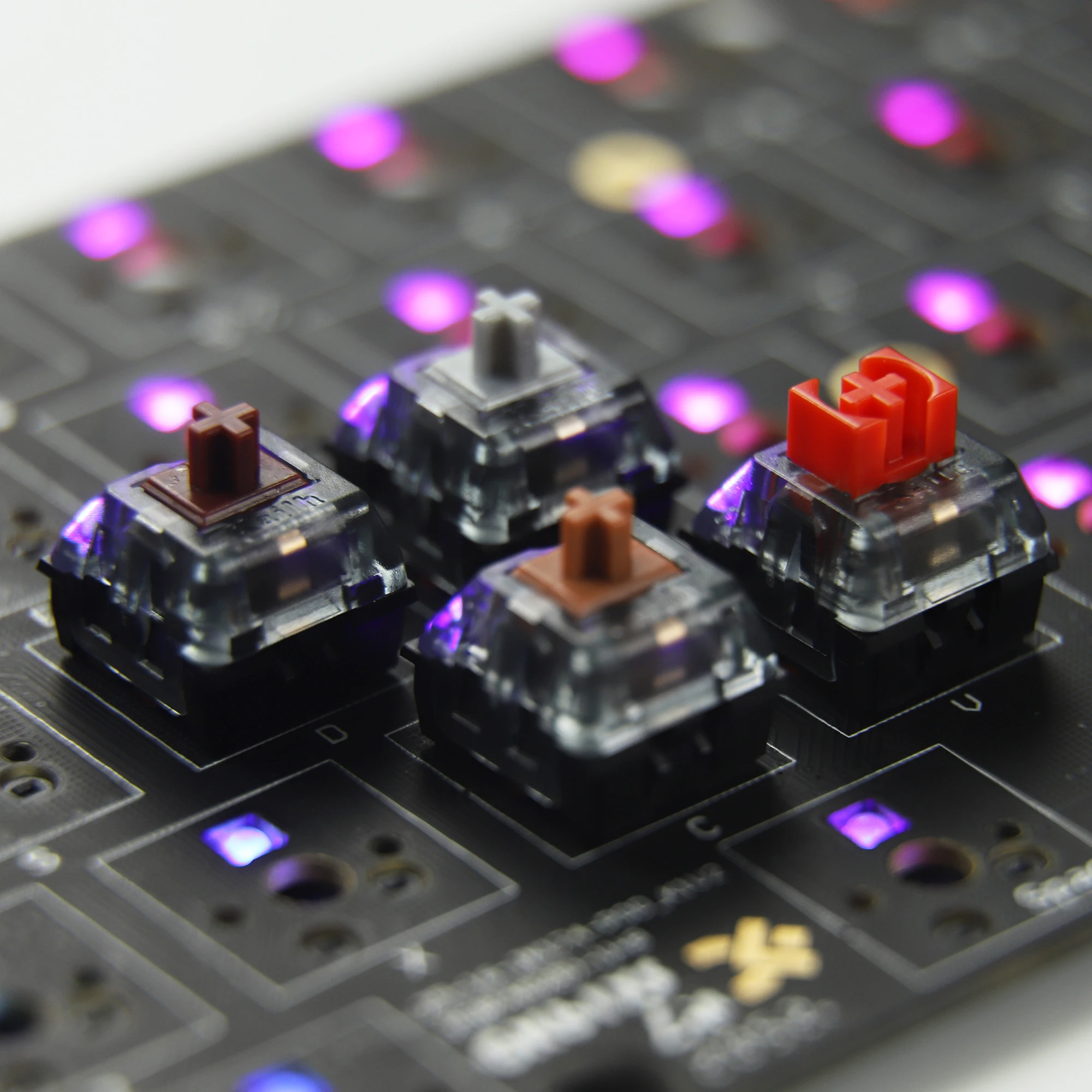 Experience precision and performance with this set of four Kailh Super Speed switches, including Silver linear, Copper tactile, Bronze clicky, and Red linear variants. Each switch features a transparent housing for a sleek, modern look with internal visibility, and is pre-lubed for smooth keystrokes. The Silver and Red linear switches have an actuation force of 38gf, with an actuation distance of 1.9mm and a bottom-out force of 42gf. The Copper tactile switch offers an actuation force of 38gf, 1.1mm actuation distance, and a bottom-out force of 60gf. The Bronze clicky switch provides 48gf force, 1.1mm actuation distance, and 45gf bottom-out force. All are rated for 80 million keystrokes.