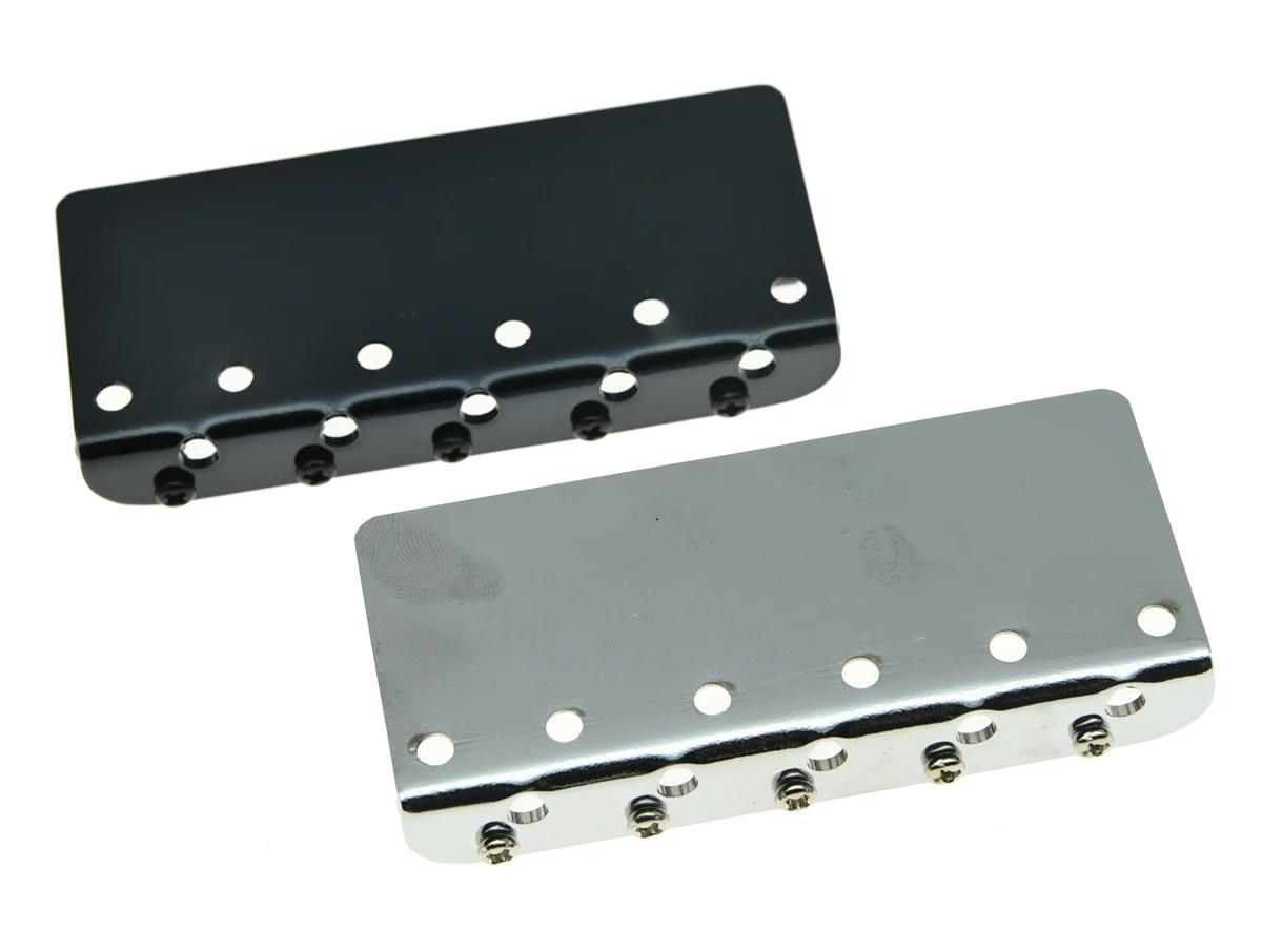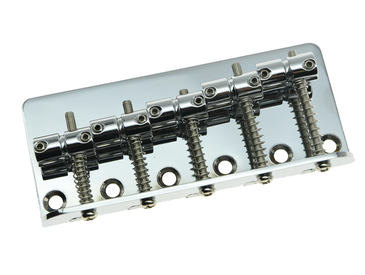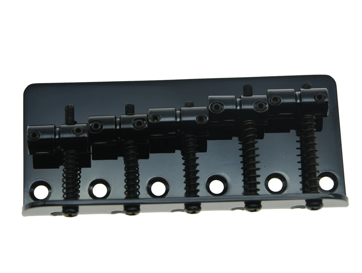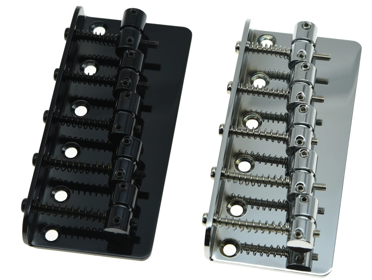 Experience a new level of performance and style with this high-quality KAISH 5-string electric bass bridge. Designed to perfectly fit Jazz and Precision bass guitars, this bridge offers excellent adjustability and durability. The sleek black matte finish adds a modern, understated elegance, while the shiny chrome variant provides a polished, reflective look that stands out on stage or in the studio. Precision-engineered, it features six cylindrical saddles aligned parallel for consistent string support and stability. With a length of about 98mm, width of 44mm, and 18mm string spacing, it ensures optimal sound clarity and sonorous tone. Its “top load” design allows easy string installation from the back, and height adjustment lets you customize your playing comfort. Made with attention to detail, this bridge enhances both style and functionality for your 5-string bass guitar.
