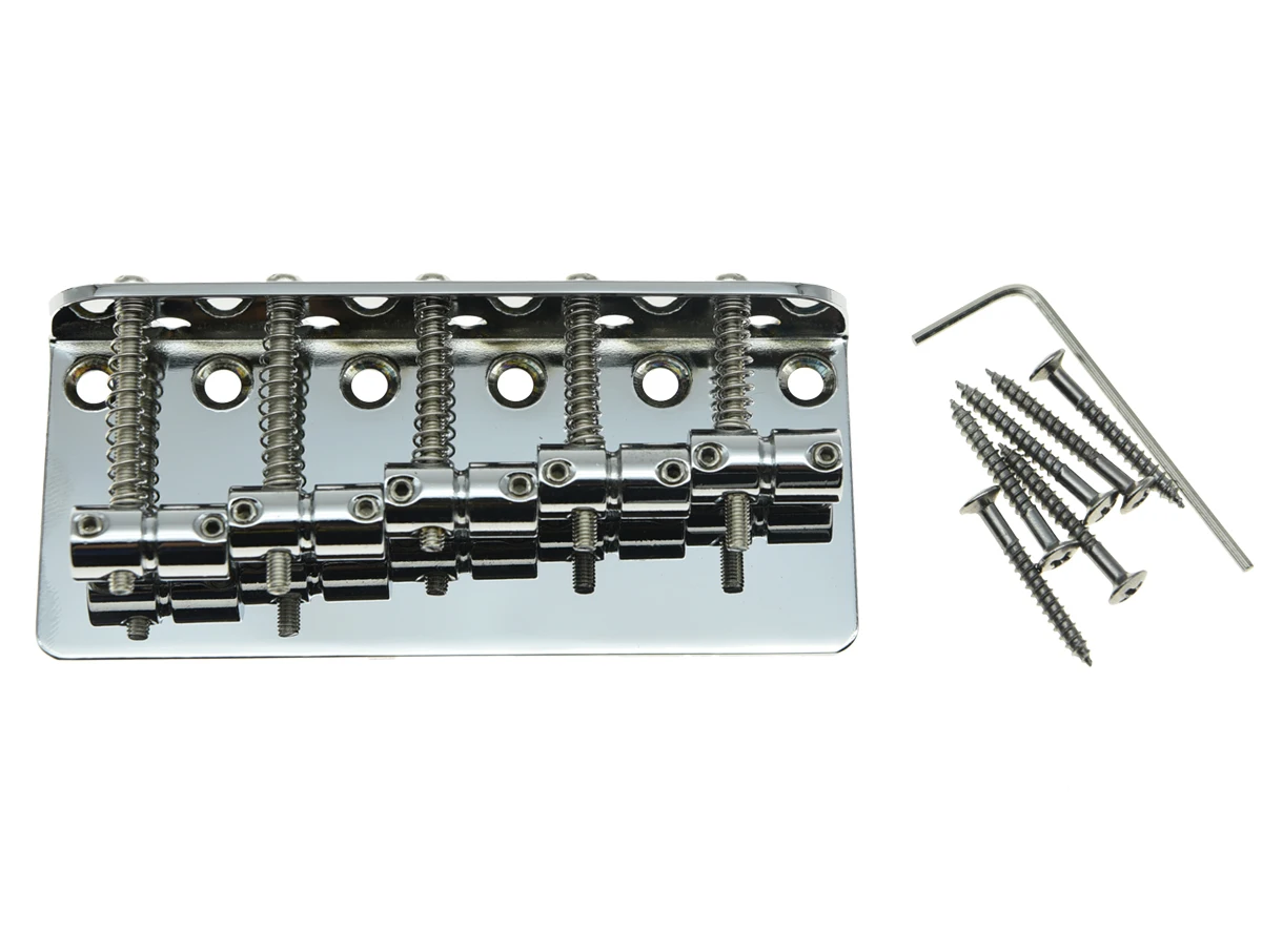 - Constructed with durable materials and robust design, it includes six cylindrical saddles aligned parallel, with screw holes for precise height and string tension adjustment.