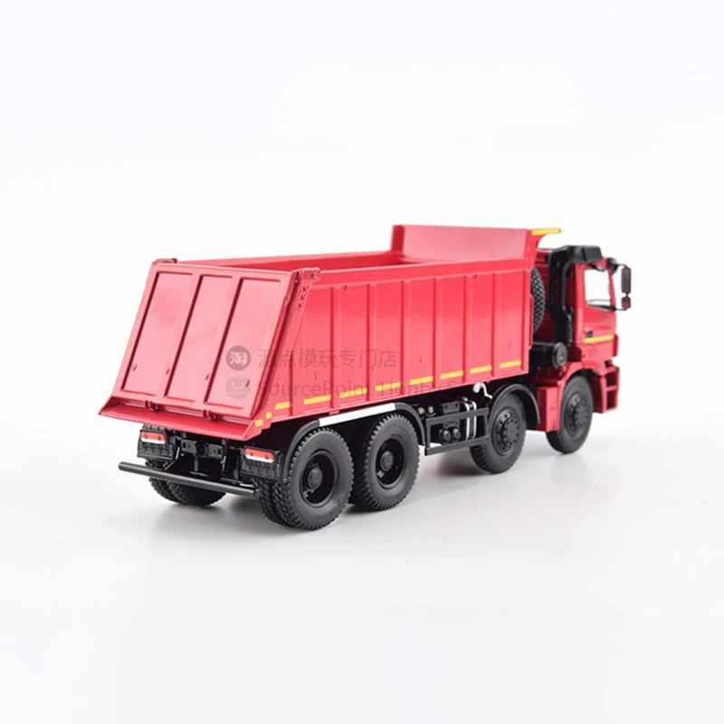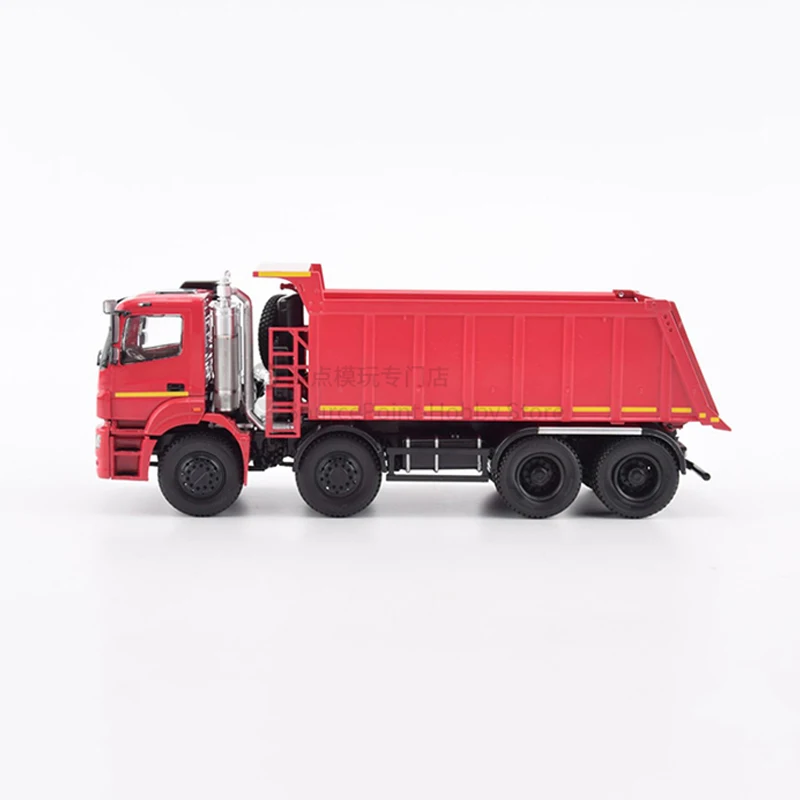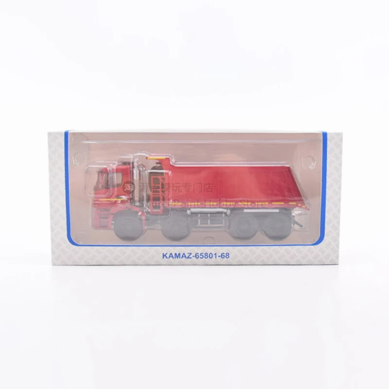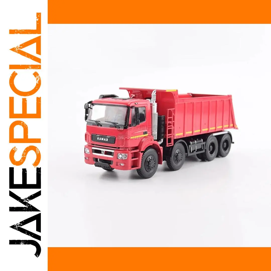Experience the robust craftsmanship of this 1:43 scale diecast alloy model of the Kamaz 65801 heavy-duty dump truck. Its vivid red finish instantly captures attention, complemented by black accents on the grille, headlights, and wheels. Every detail comes alive through precise die-casting, including the textured surface, vertical ridges on the dump bed, and realistic undercarriage components. Transparent windows allow a glimpse into the intricately crafted interior, while small features like side mirrors, windshield wipers, and tire treads enhance realism. Measuring 21.1 cm long, 6.2 cm wide, and 8.3 cm high, this model exudes industrial authenticity. This collectible is perfect for display, offering a striking addition to any collection with its meticulous details and durable alloy construction. Turn your admiration for heavy machinery into a refined display piece with this exceptional model.