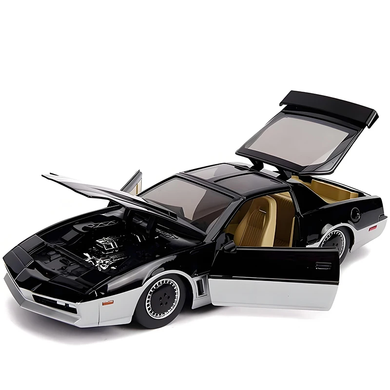 - This 1:24 scale model is crafted from high-quality alloy and plastic for durability and realism, with detailed exterior and interior features reflecting KARR’s iconic design.