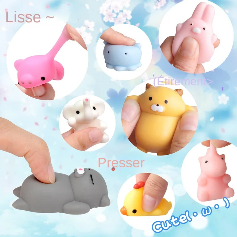 - High-quality, soft, and rounded with smooth surfaces that make squeezing enjoyable. Each toy features minimal facial details—tiny eyes and mouths—highlighting kawaii charm.
