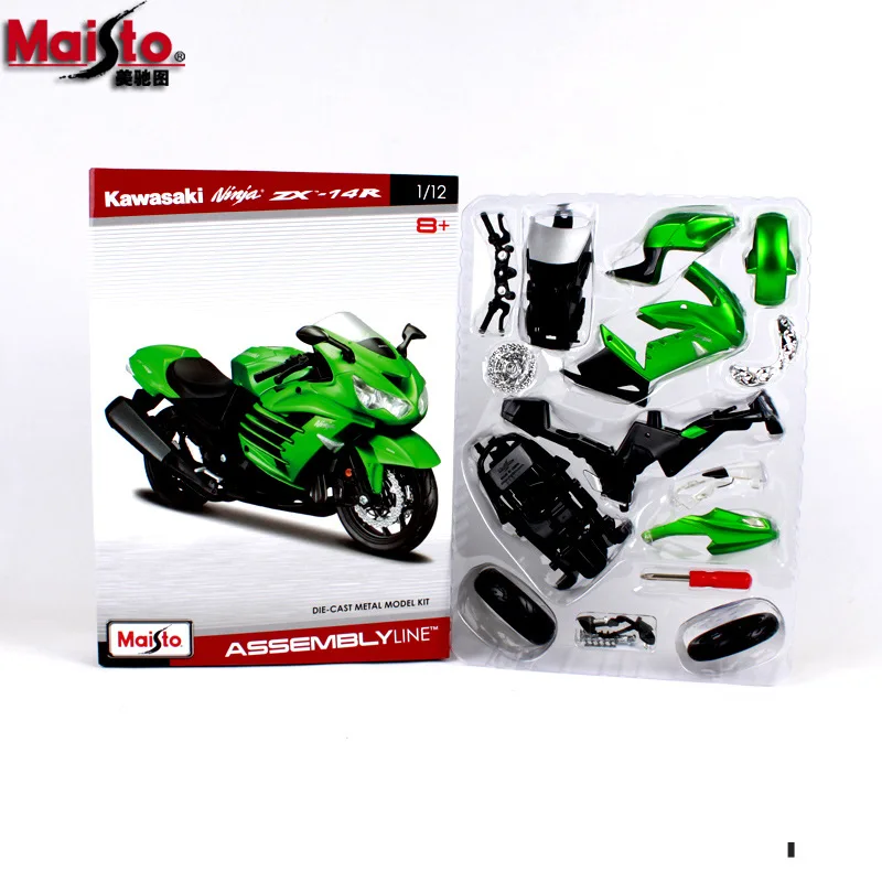 Imagine owning this stunning 1:12 scale diecast replica of the Kawasaki H2R racing motorcycle by Maisto. Crafted from high-quality metal, this assembled model captures every intricate detail from the sleek black bodywork with vibrant green accents to the textured seat and realistic metallic components. The aerodynamic fairing, clear windshield, and detailed suspension system make it a true collector's pride. With vivid green wheel rims and finely crafted exhaust pipes, this model exudes a sporty aesthetic and high-performance appeal. Suitable for adult collectors and enthusiasts, it’s designed to bring the thrill of motorcycle racing into your home or display case, showcasing superb craftsmanship in every aspect.