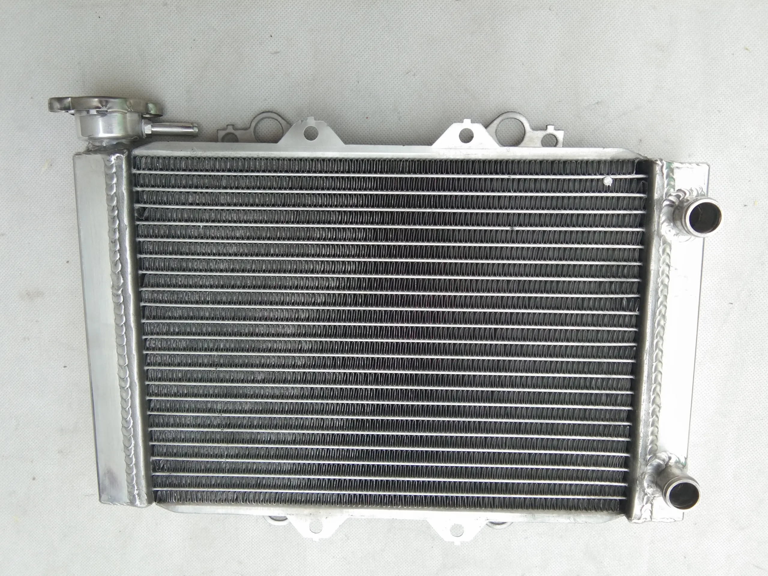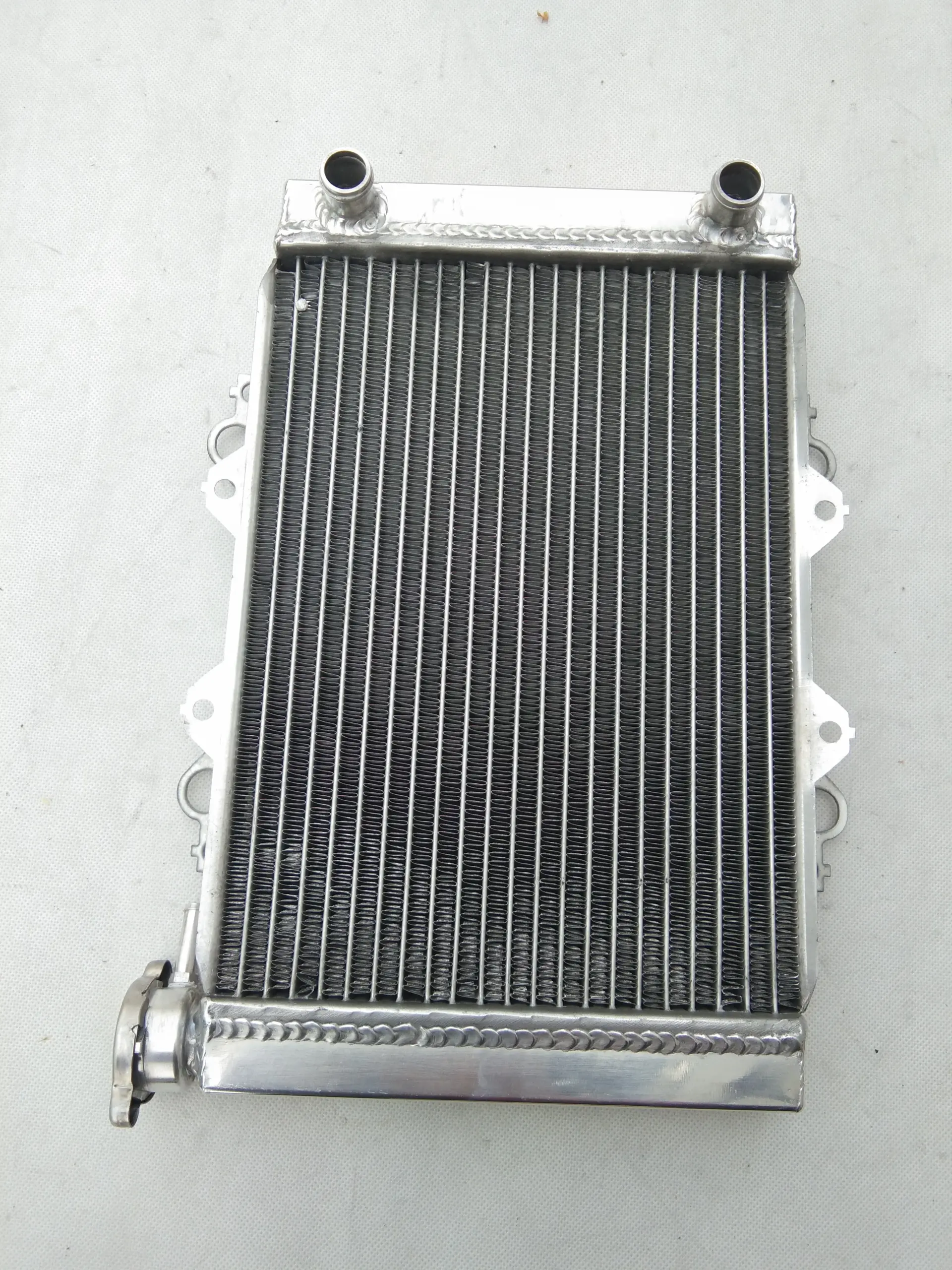 Enhance your Kawasaki KFX450R (2008-2012) with this high-performance aluminum radiator cooler featuring a 301×218×26mm core and overall dimensions of 379×281×73mm. Constructed from durable T-6061 aluminum, it employs vacuum brazing for the core and TIG welding for the tanks, ensuring superior strength and heat dissipation—offering approximately 40% more cooling capacity than standard radiators. Designed for heavy-duty use and easy installation with minimal modifications, this brand-new radiator exceeds OEM standards, providing reliable performance. Backed by a 1-year warranty against manufacturing defects, it’s the perfect upgrade to keep your ATV running at peak temperature and efficiency.